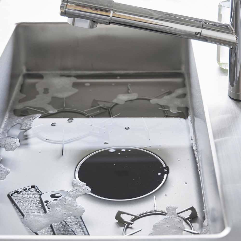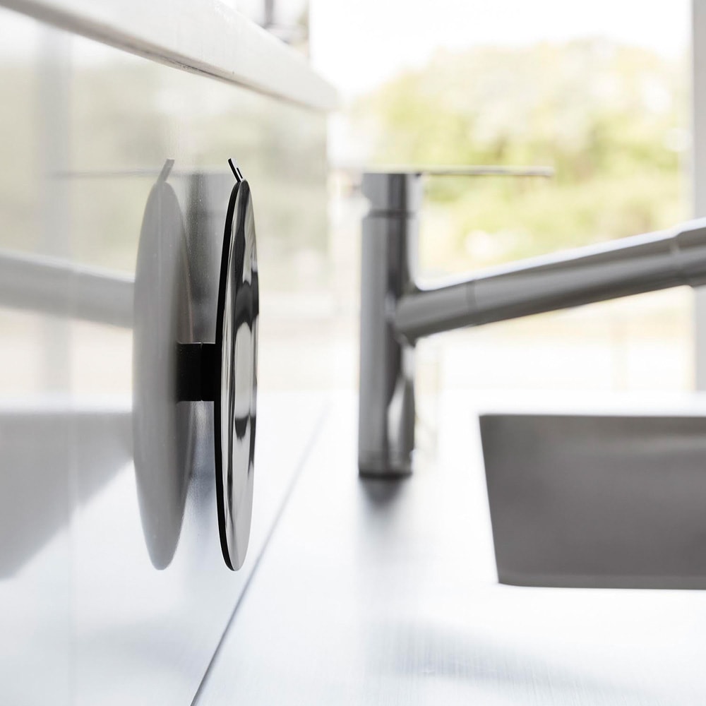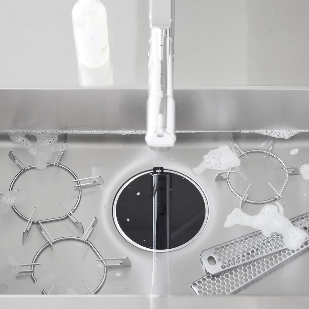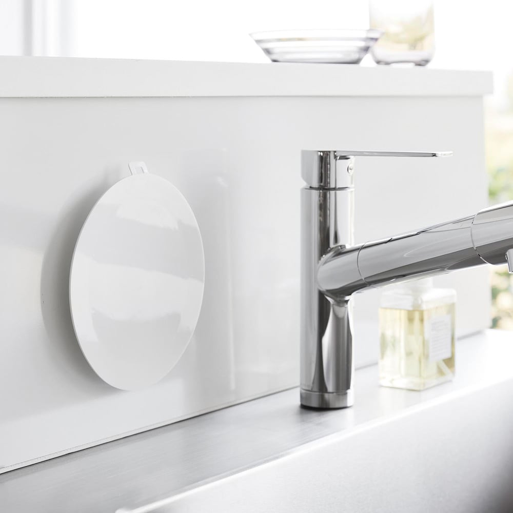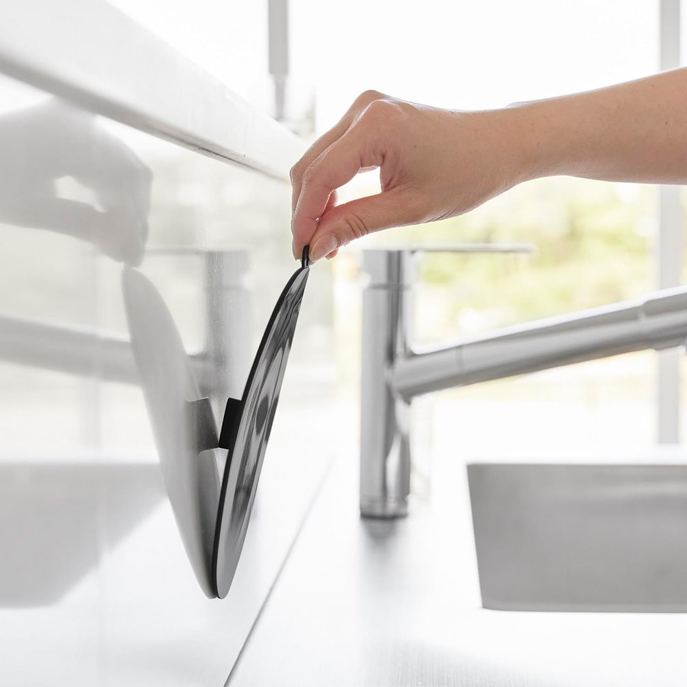 ●使わない時は、キッチンパネルやにシンク周りのマグネットが付く壁面に浮かせて収納可能