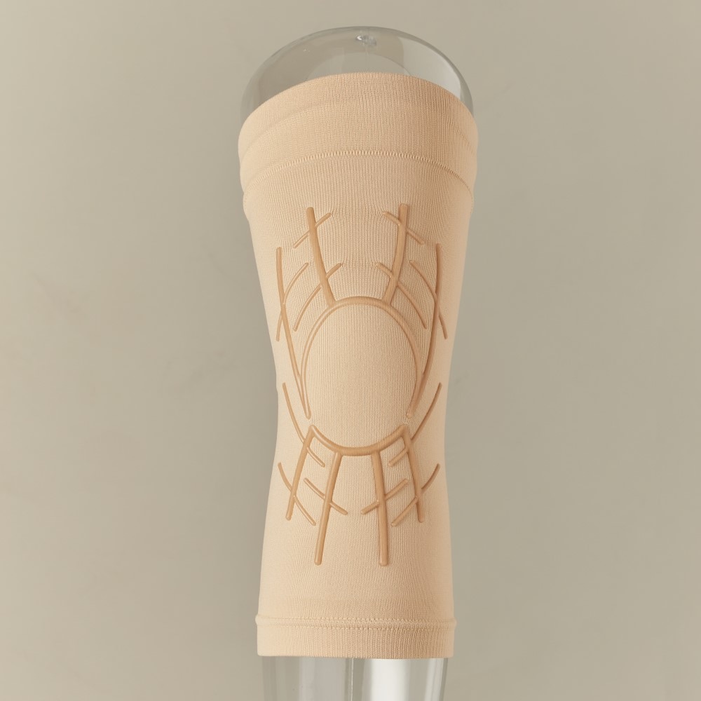シリコーン加工を筋肉に沿って配置し、膝を中心に安定動作に繋がるこだわりの形状に仕上げました