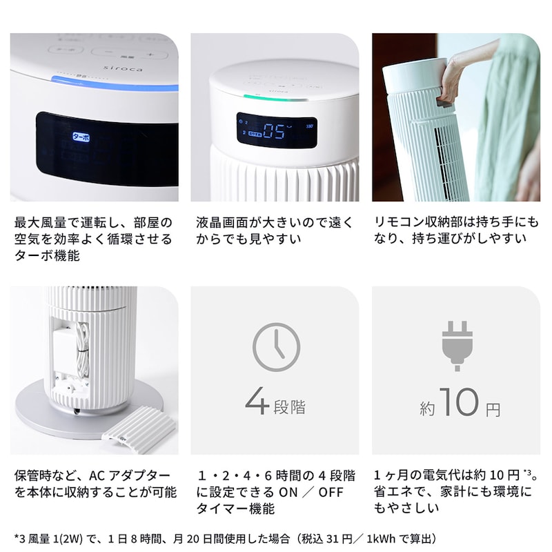 ※風量1(2W)で1日8時間、つき20日間使用した場合(税込31円/1kWhで算出)