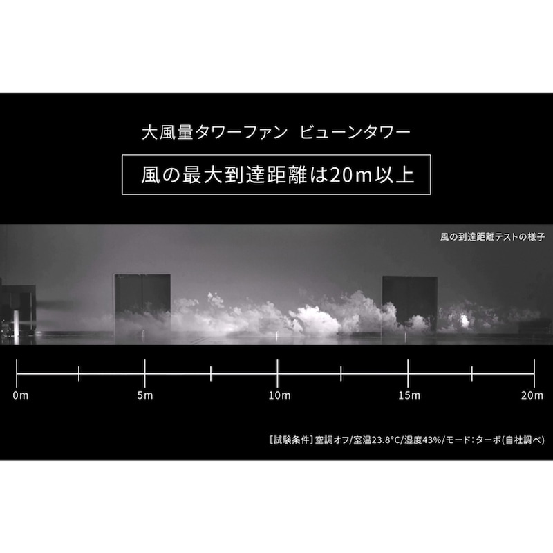 DC大風量タワーファン ビューンタワー 【最大20m先まで風を届けるパワフル風量】