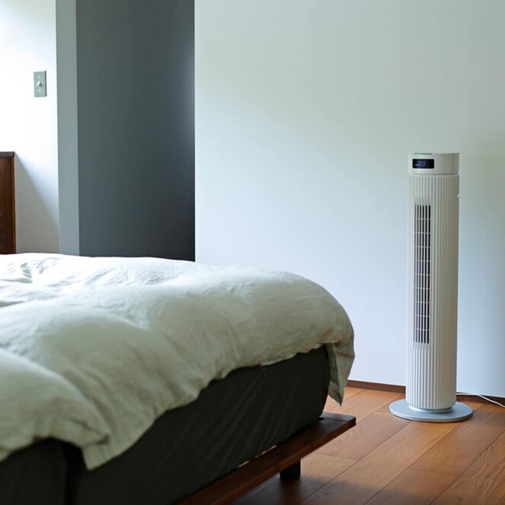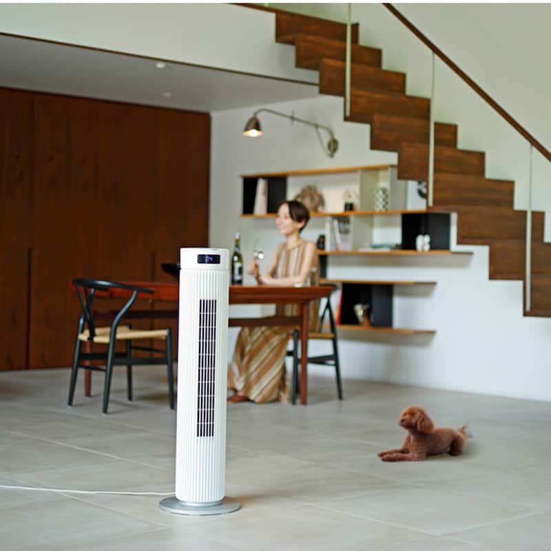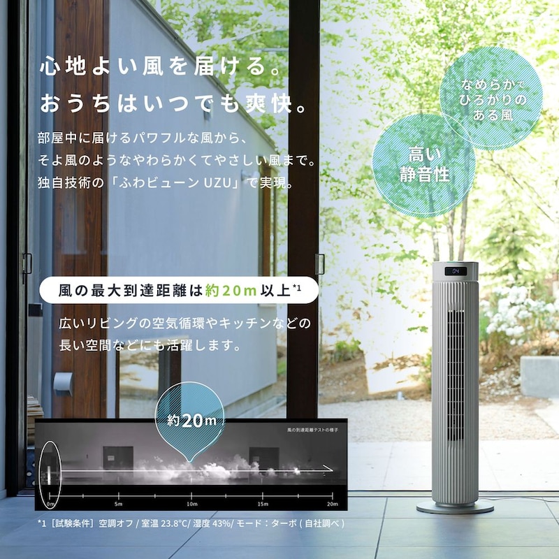 ●独自技術「ふわビューンUZU」によりパワフルな風から優しい風まで可能なタワーファン。