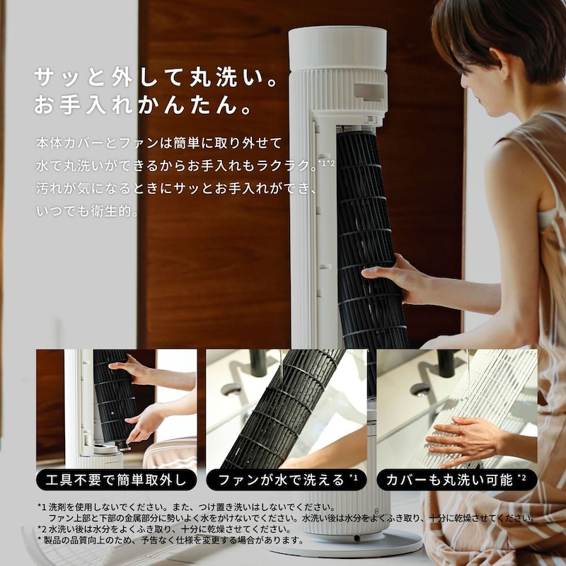 大風量のパワフルな風から、静かでやさしい風まで。ファンも取り外せて洗えるのでお手入かんたん。
