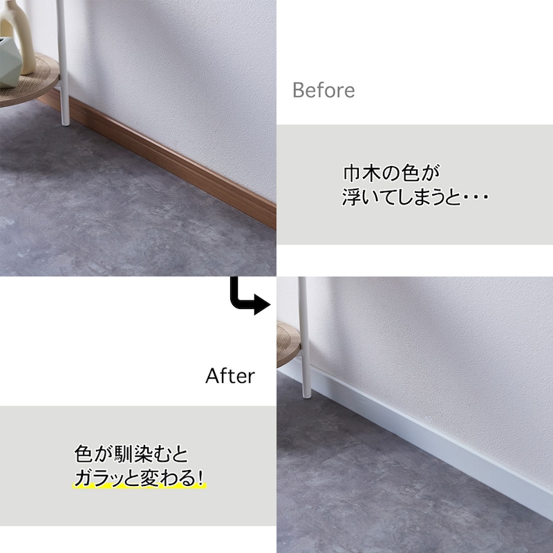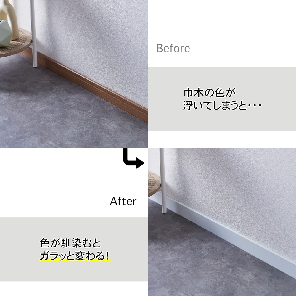 • 部屋のインテリアに合わせやすいシンプルなホワイトの巾木テープ