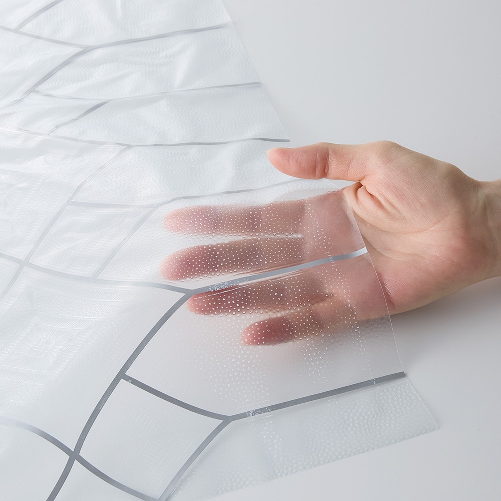 水さえあれば簡単につけられます。切ったり付け加えたりもできるので、とてもよかったのですが、難点が1つ。送られてきた時に巻き付けられていた商品説明の紙が、本体にベッタリつきすぎて、柄が少し白くなってしまいました。同じものを4つ購入しましたが、どれも同じよう場状態で、がっかり。交換するのも面倒なので、そのまま使っています。