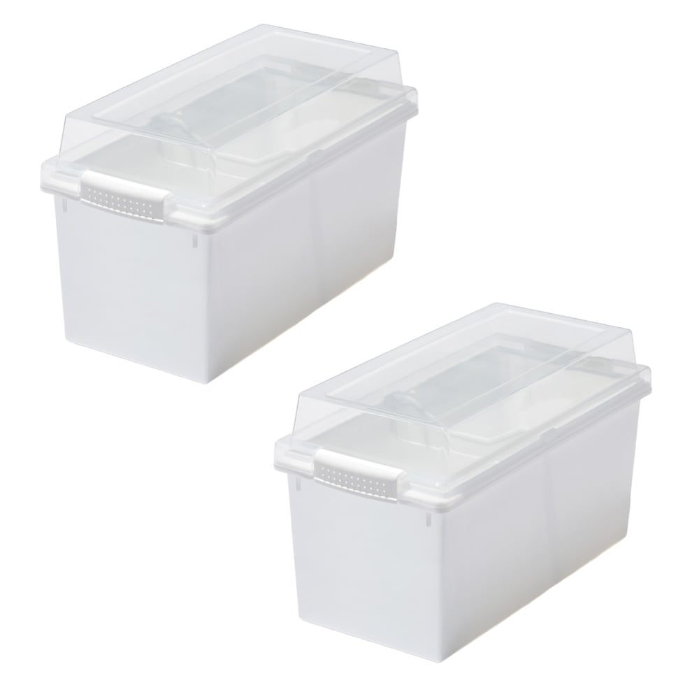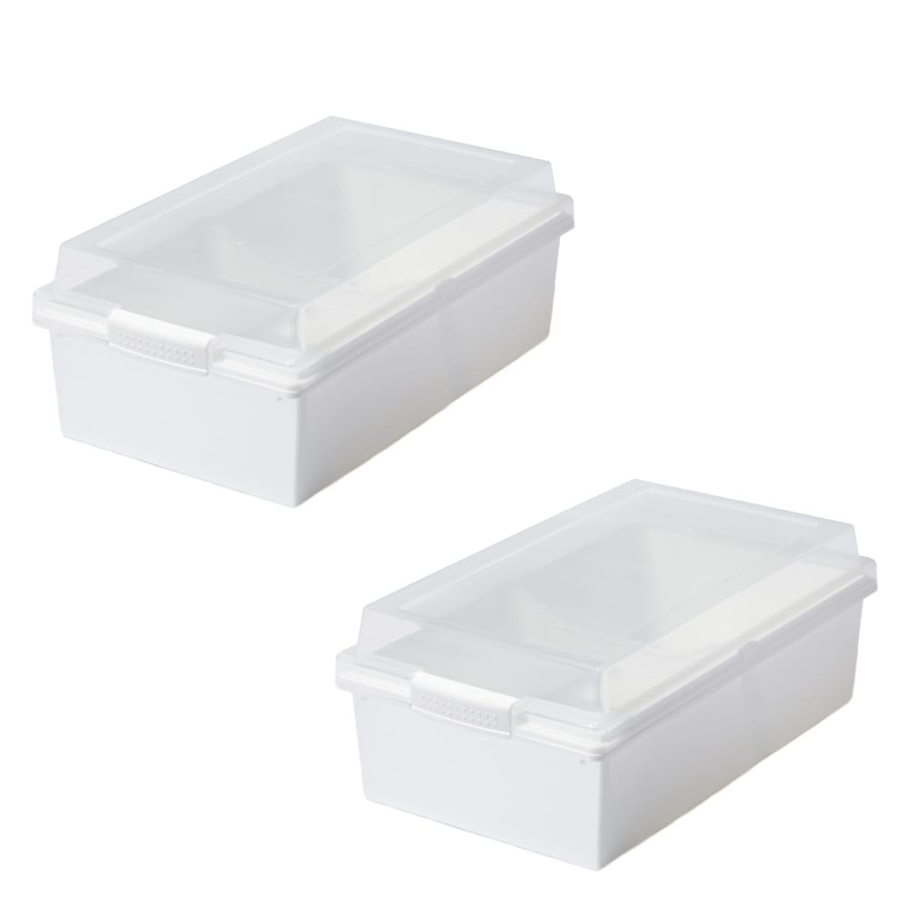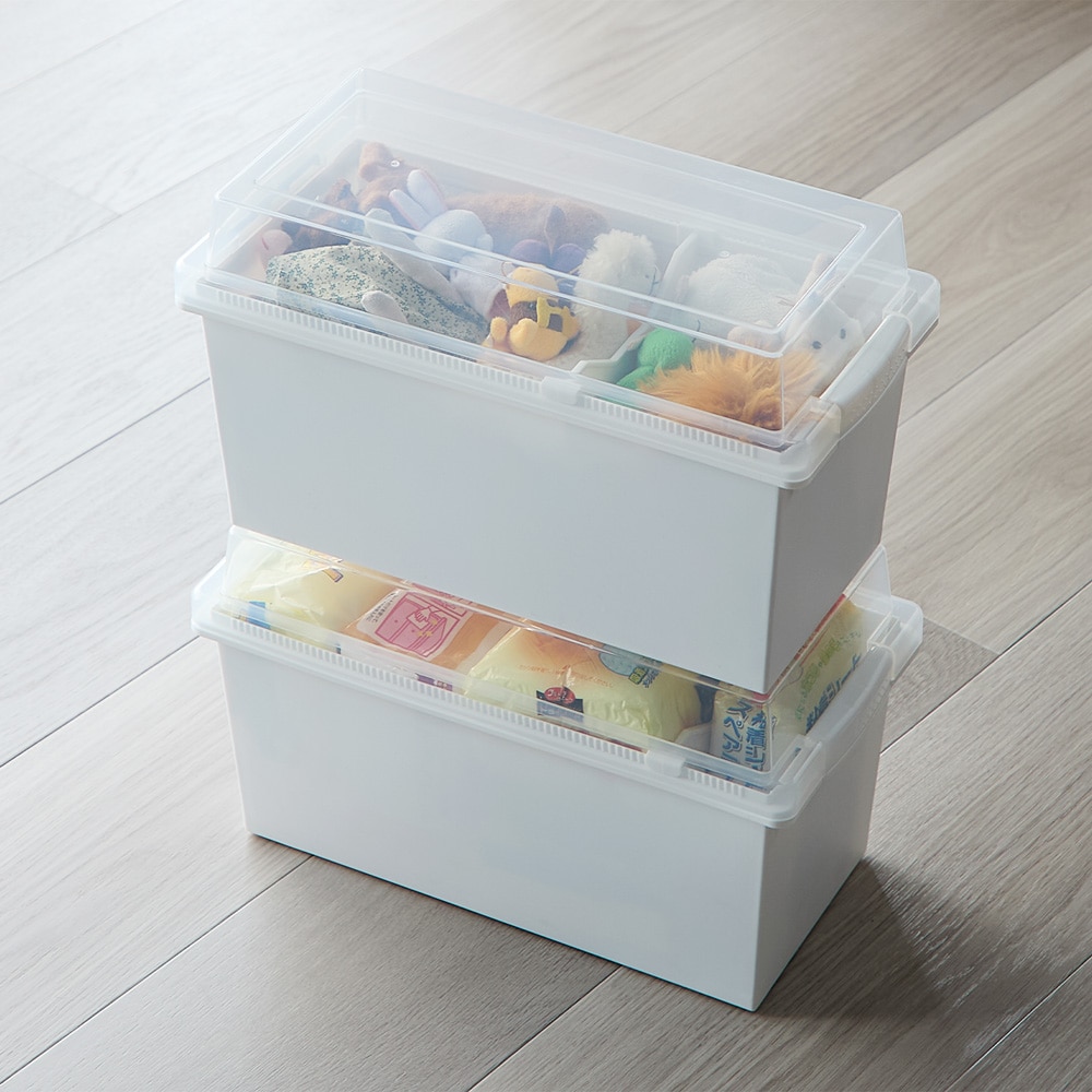 防災用品の保管に 積み重ねても中身が見えるフタ付きボックス<2個組>