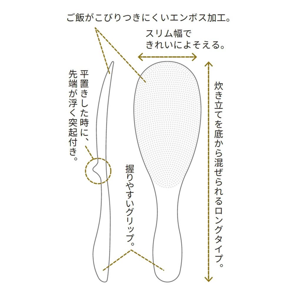 確かに米粒はくっつきませんが、ぽつぽつの隙間に粘りの成分がくっつくので、御飯をよそったら直ぐに水に浸しています。以前のくっつかないしゃもじは三菱炊飯器に付属されていた平らなもので、そちらの方が6年以上と長持ちで全くくっつかなかった。その長持ちしゃもじをおこげをつけて炊いた土鍋で使ってダメにしてしまい(自己嫌悪)、口コミを見て購入してみましたが、今までのしゃもじの方が断然良かったので、個人的にはリピートしないかな。辛口コメントごめんなさい。