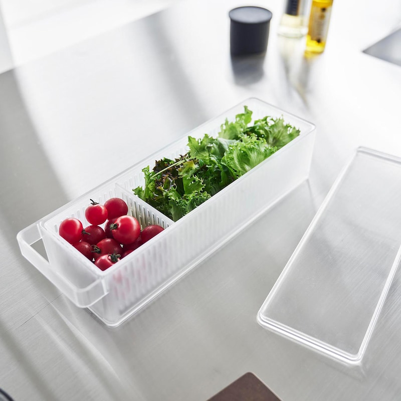 • 野菜や果物を水切りして、そのまま冷蔵庫に収納できる保存容器