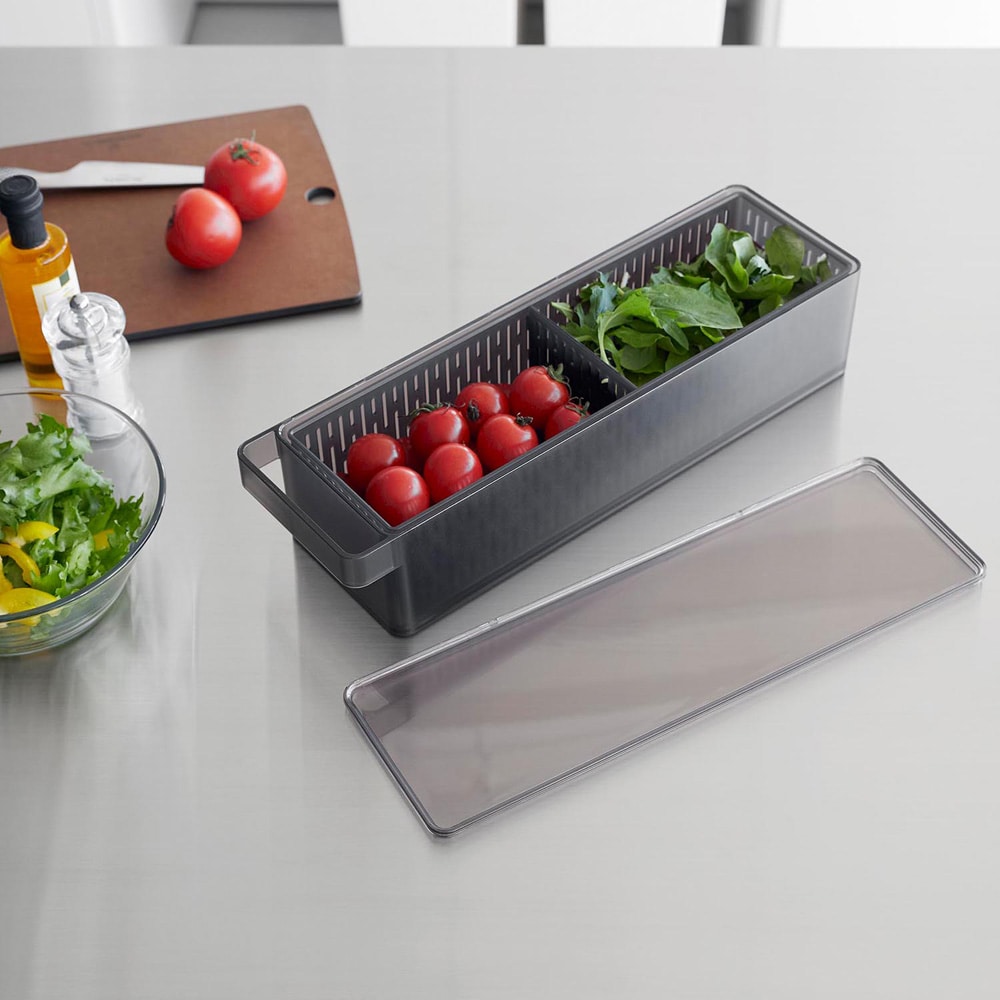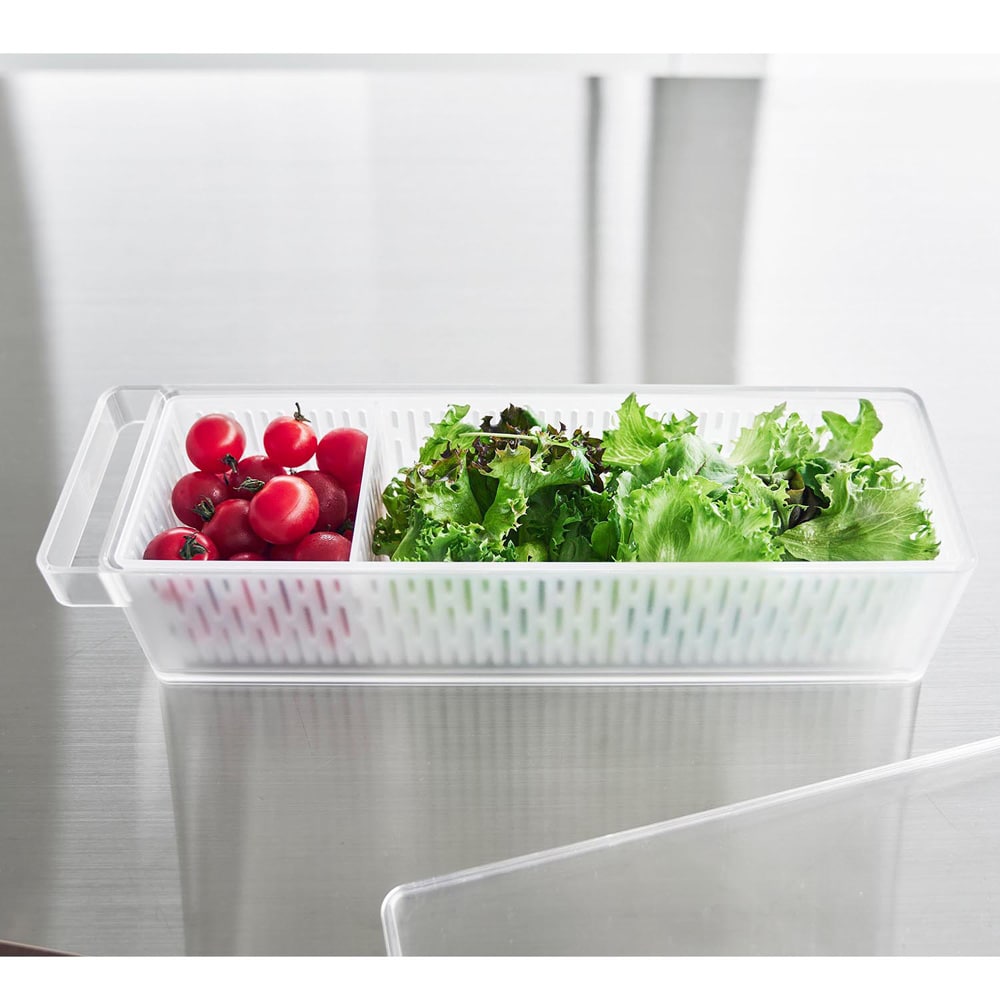 • 野菜や果物の水切りができる、蓋&仕切り付き冷蔵庫中ザルボウル
