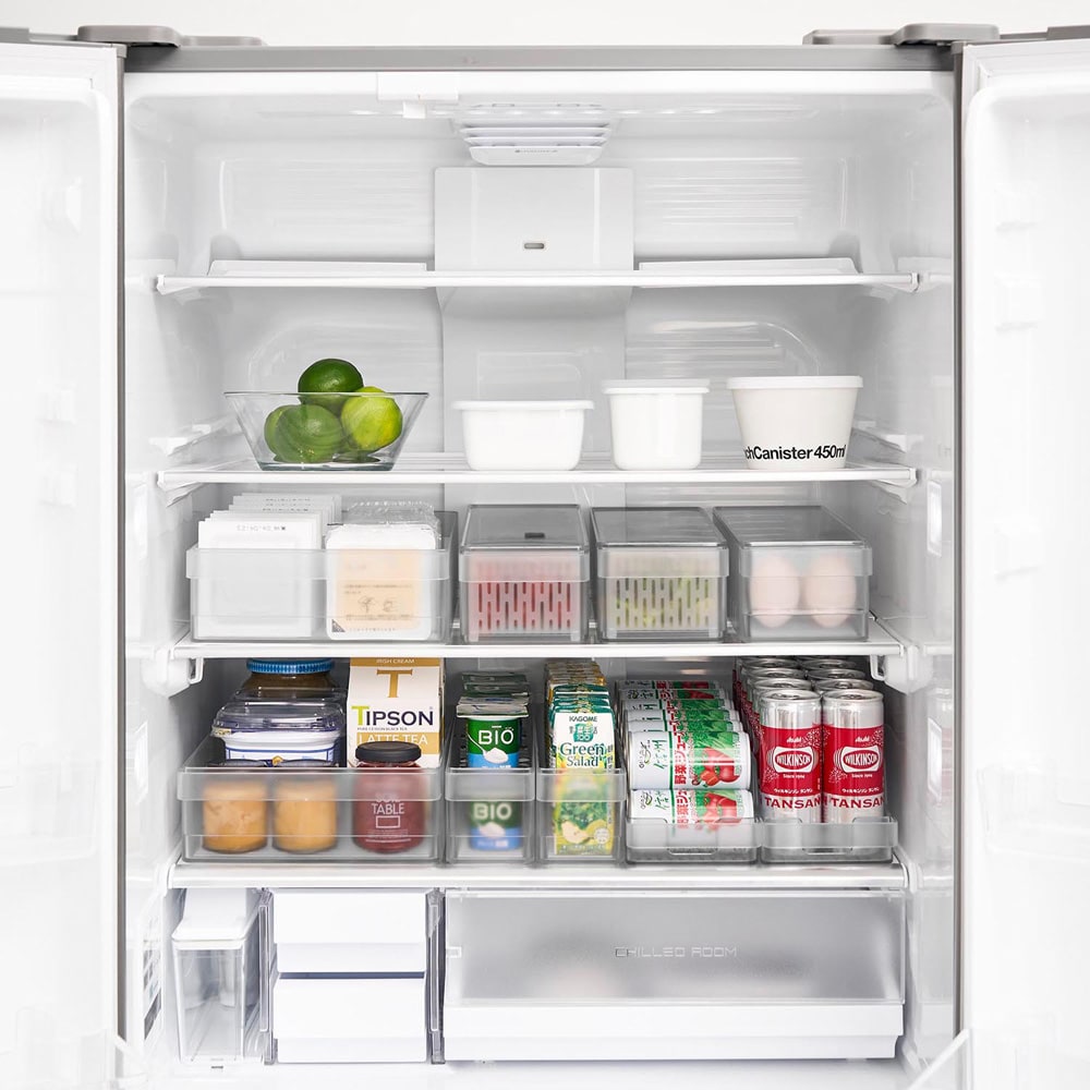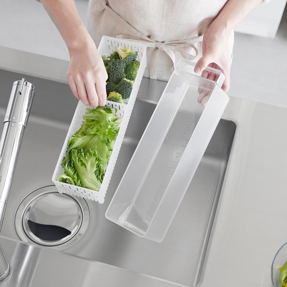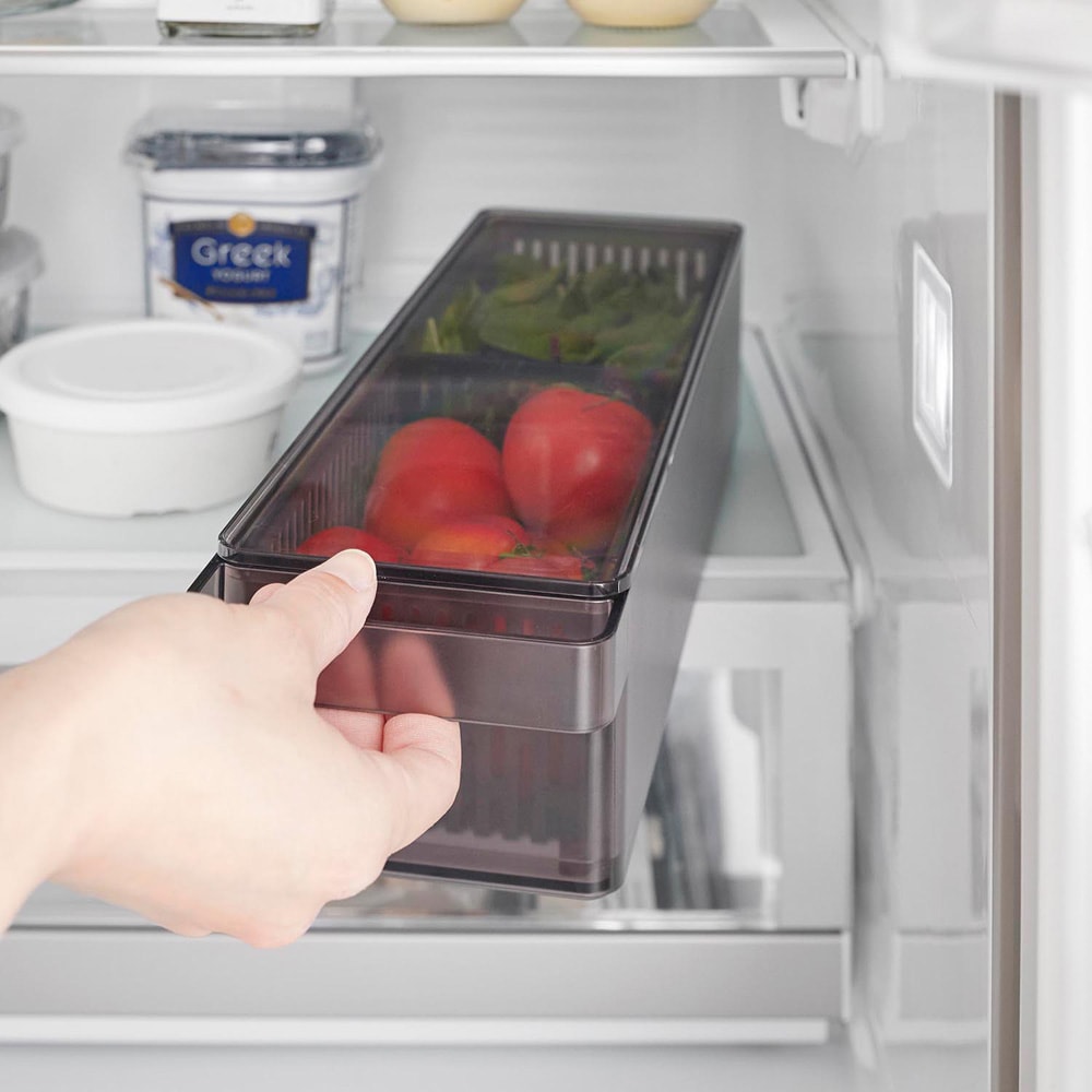 洗ってそのまま保存。ザル付きで冷蔵庫整理も快適