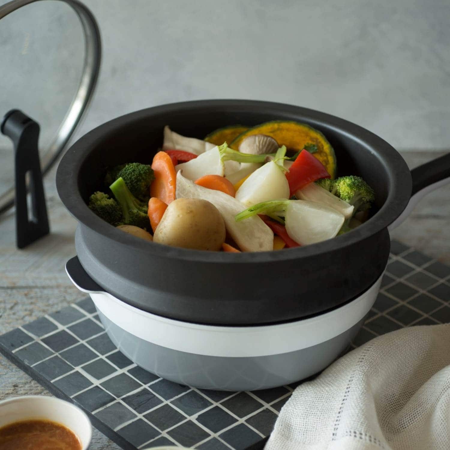 蒸し野菜をたっぷり作れる「かさなるスチーマー」 <レミパン用/レミパンミニ用>