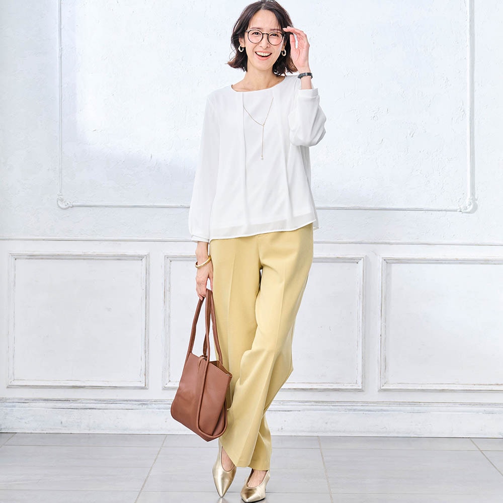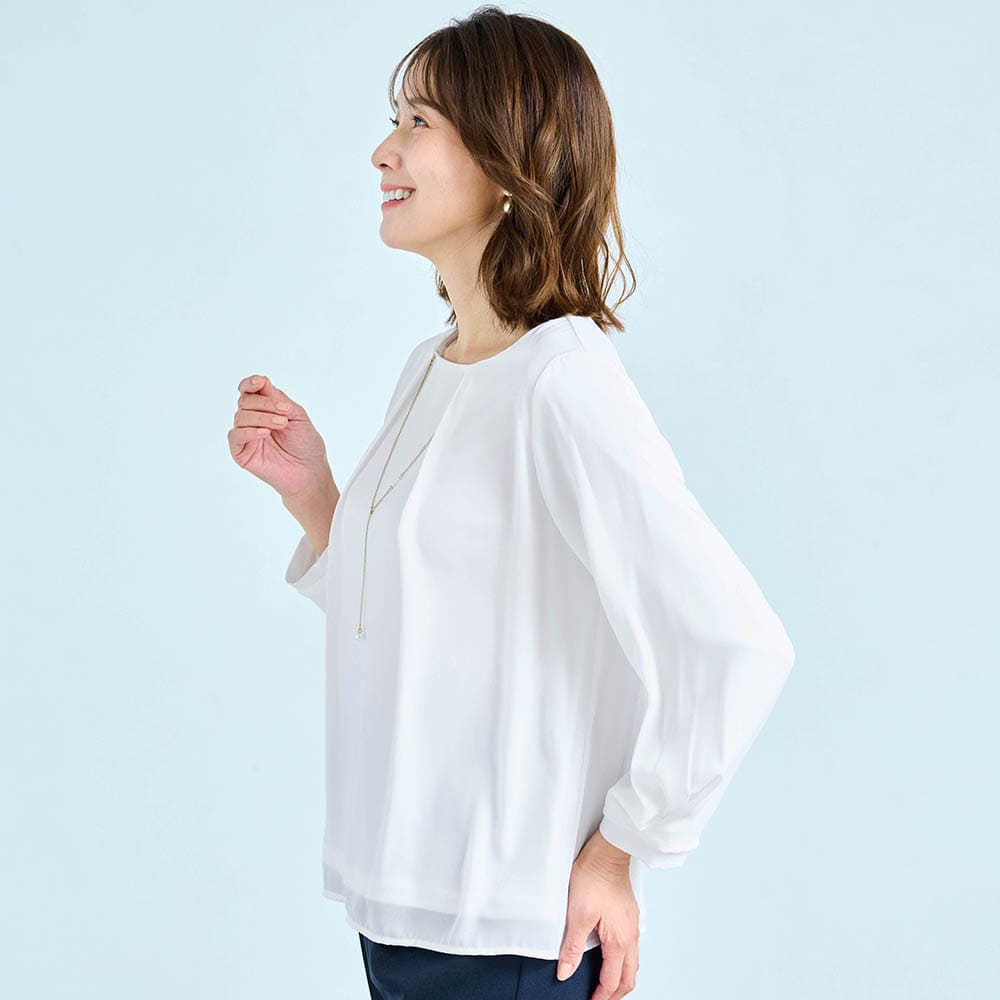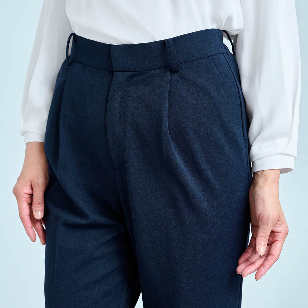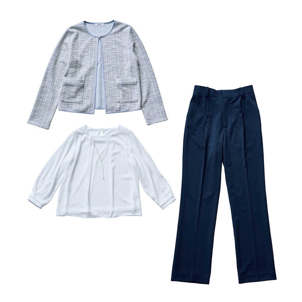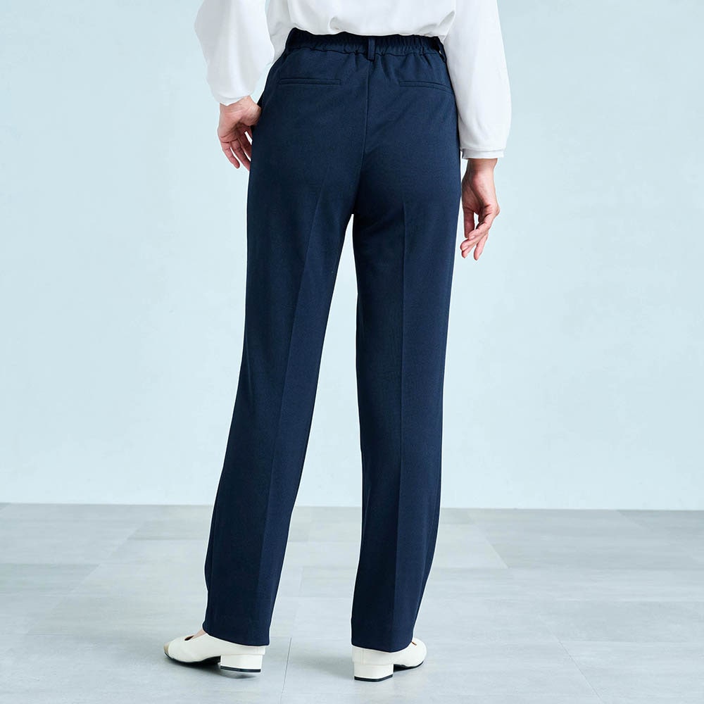 156センチがっちり体型なので、いつも肩や二の腕がキツめになるのですが、このパンツスーツはストレッチ性があり、とても着やすく動きやすかったです。