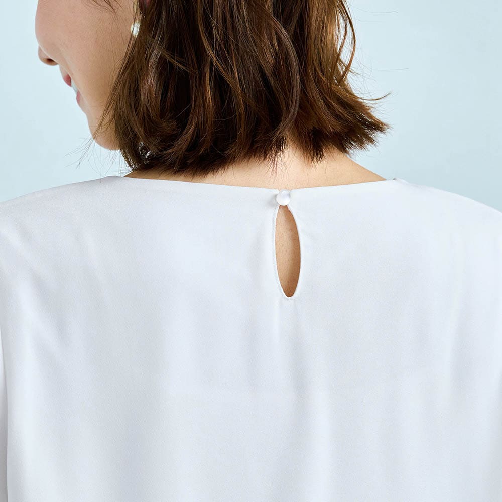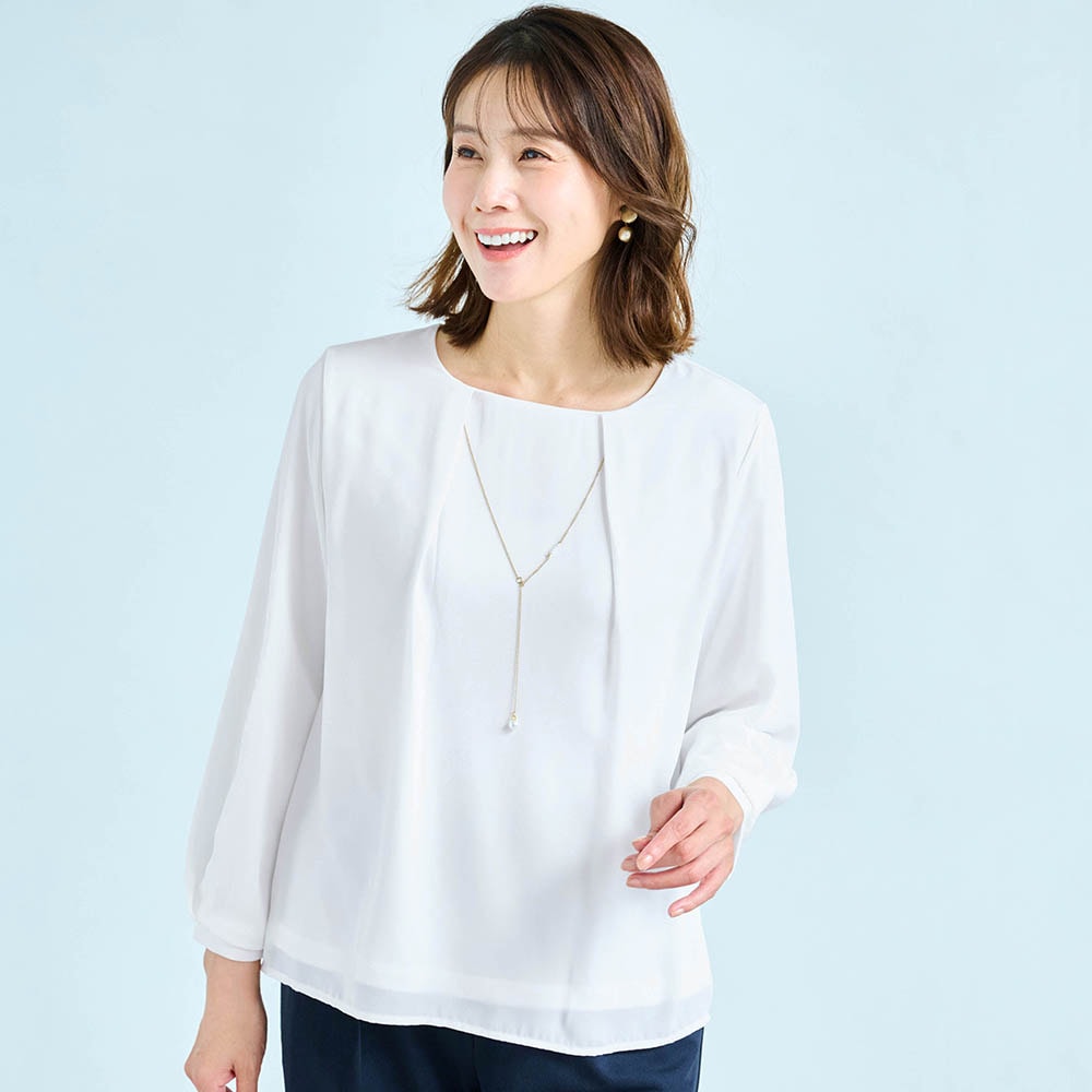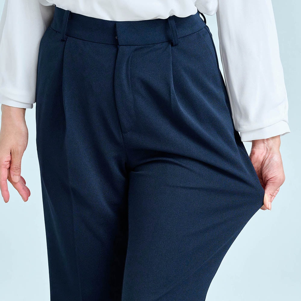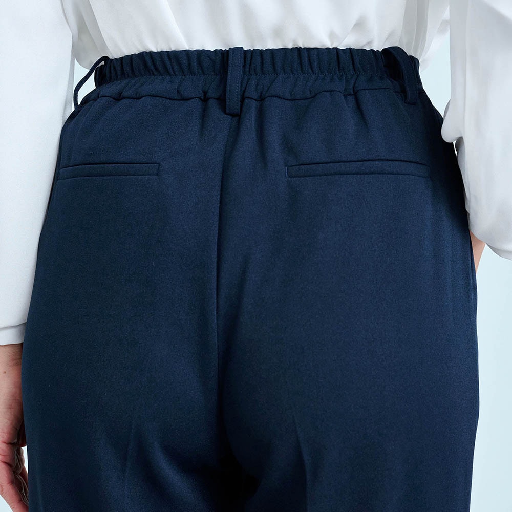 156センチがっちり体型なので、いつも肩や二の腕がキツめになるのですが、このパンツスーツはストレッチ性があり、とても着やすく動きやすかったです。