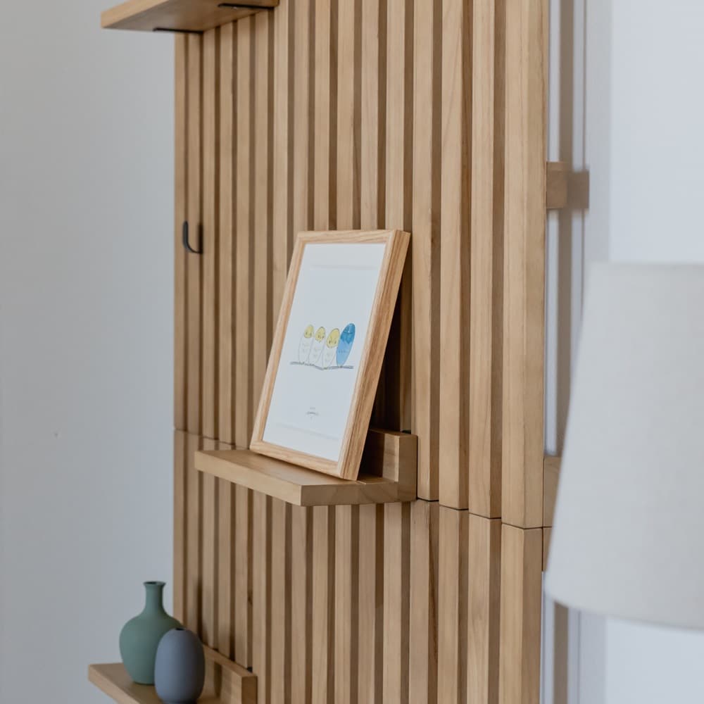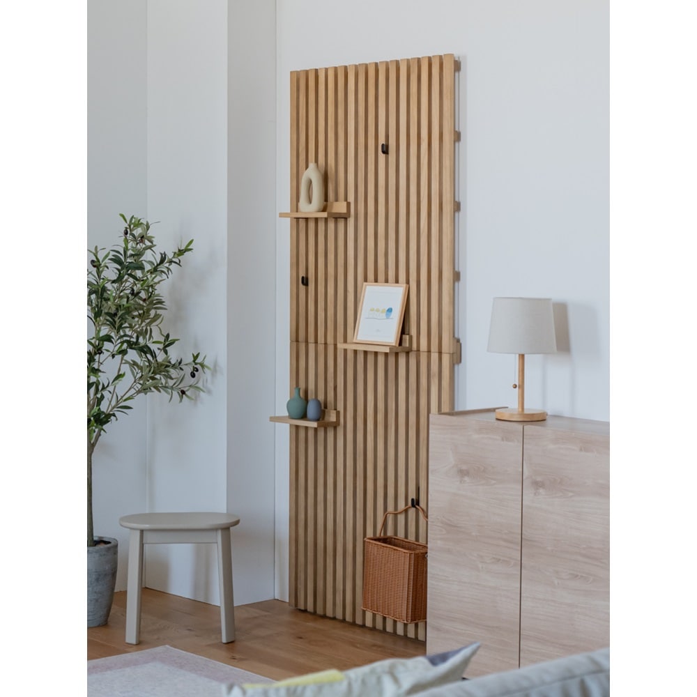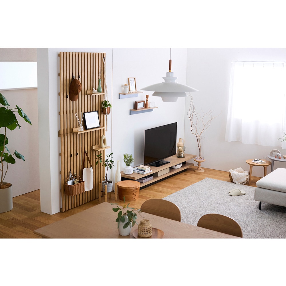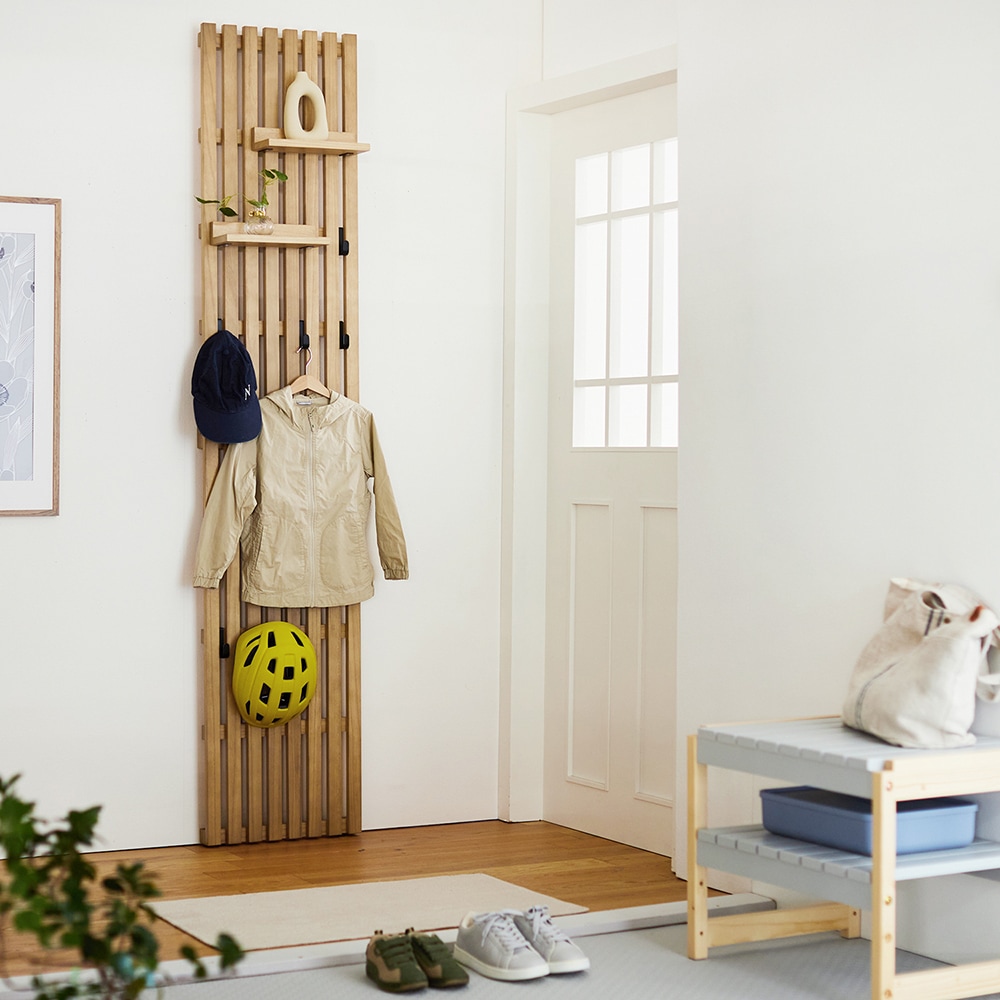 家族写真飾ったり、下は子供の登園様の服をかけたりと子供も使いやすそうでした!