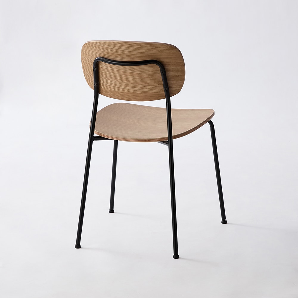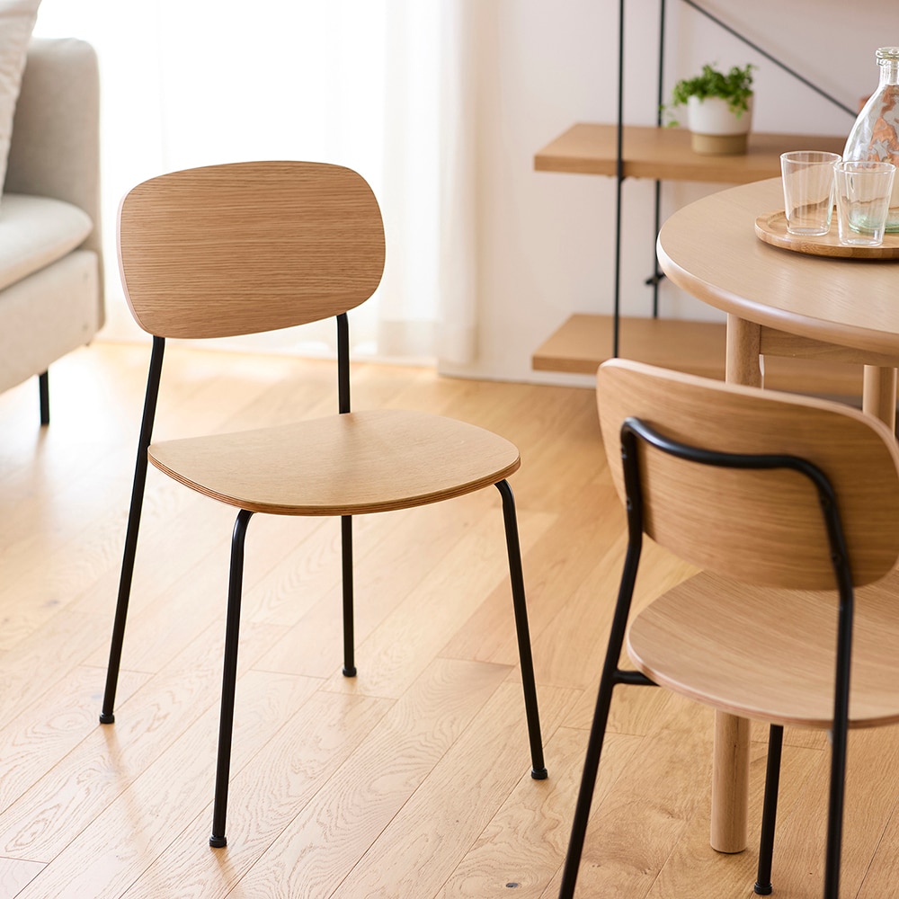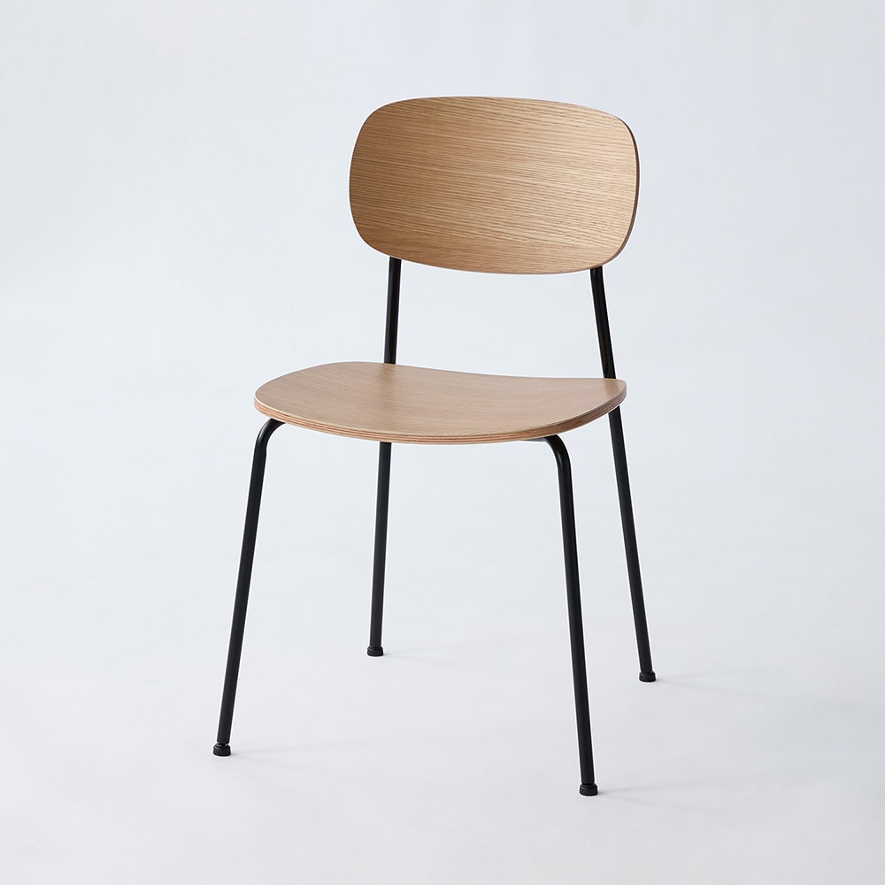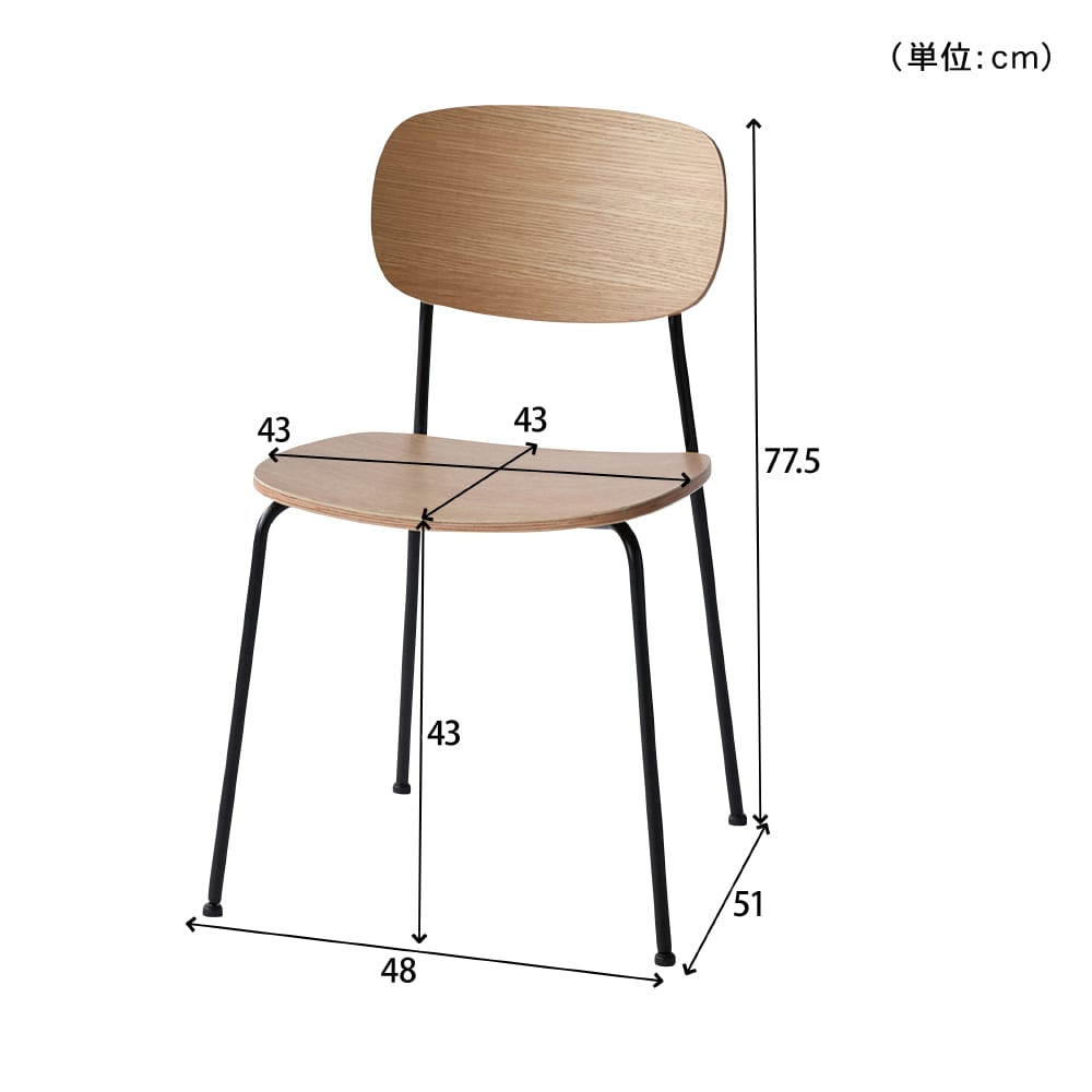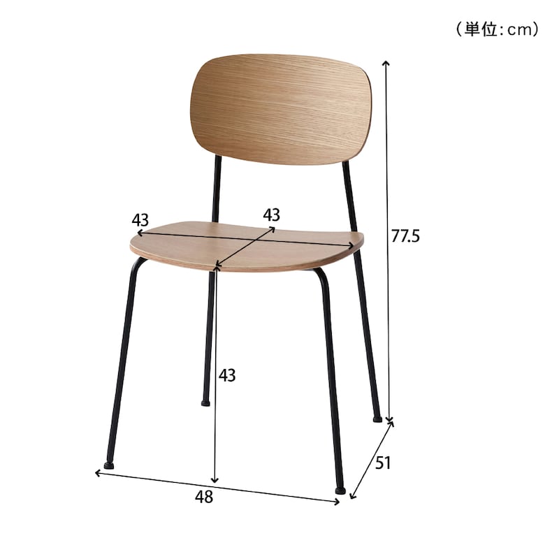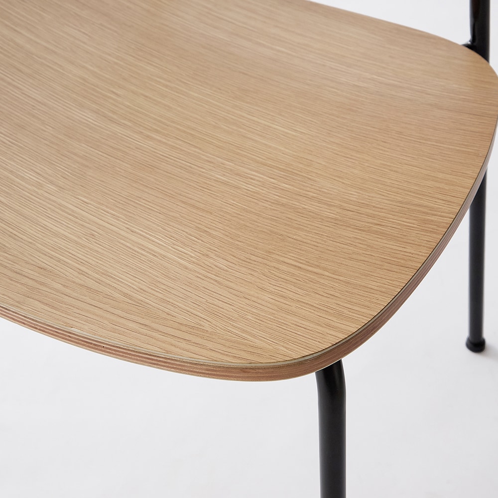 ●主材/座面・背もたれ:天然木化粧合板(オーク材<ラッカー塗装>)、その他:スチール(エポキシ樹脂粉体塗装)