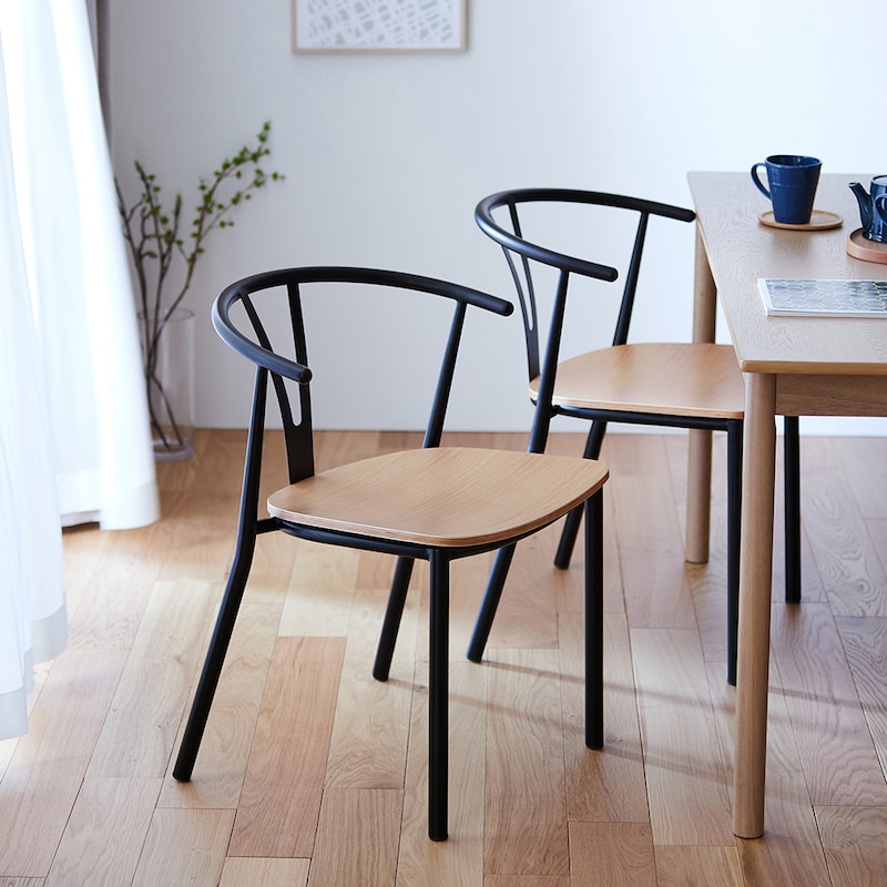 スチール脚のゆったりダイニングチェア <1脚/2脚セット>