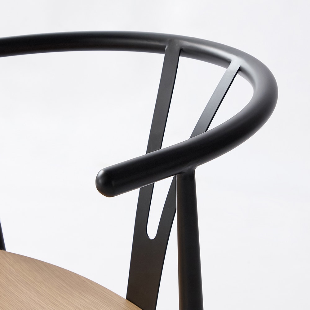 ●肘かけはスチール製にマットなブラック塗装を施し、モダンな印象です。