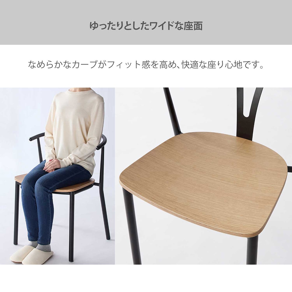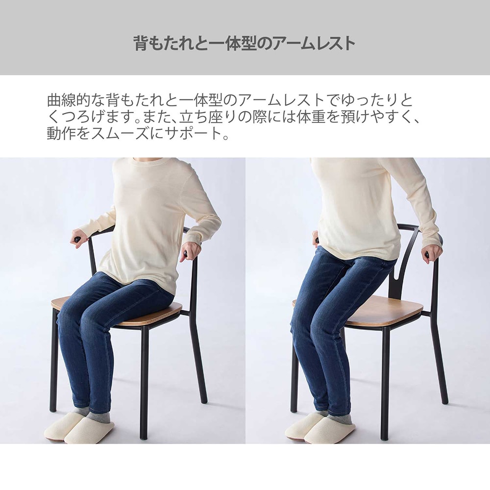 広めの座面と、立つときに手を掛けやすい肘掛け付きで、気軽に買える価格が魅力。