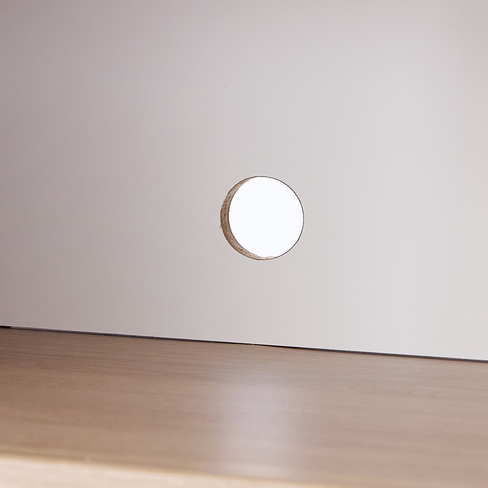 • 棚板後ろに10mmの隙間。コードを逃がしやすく、充電に便利