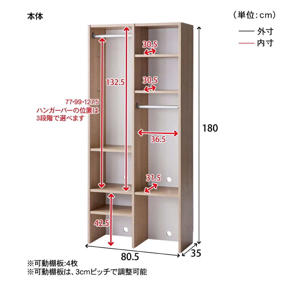 ■本体(2列)/幅80.5、奥行35、高さ180cm