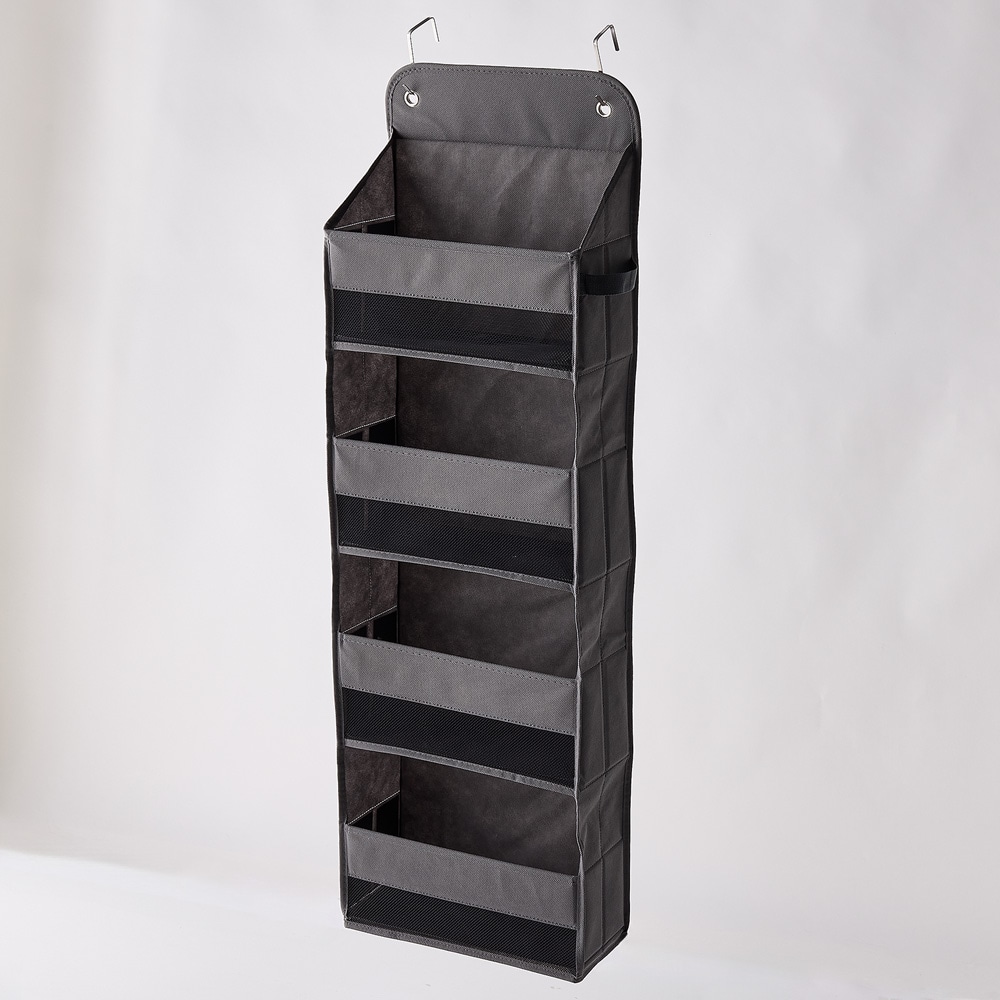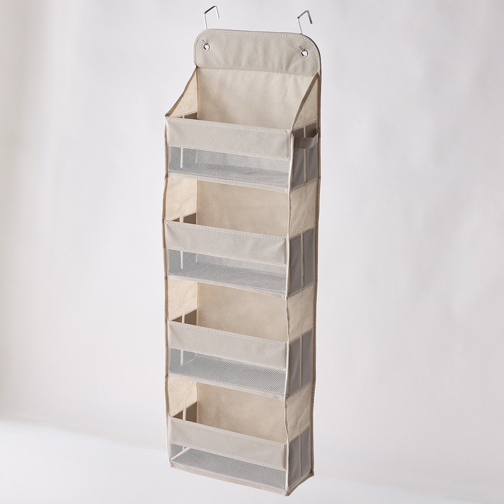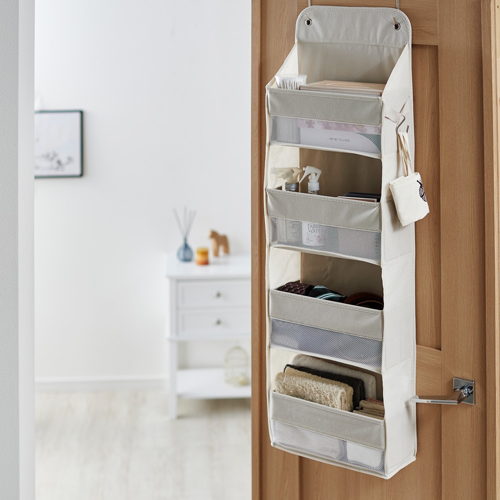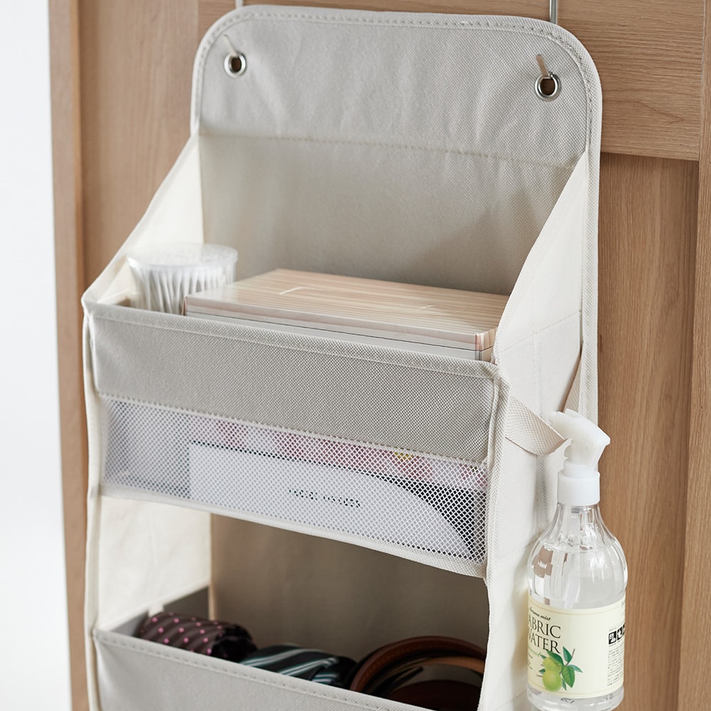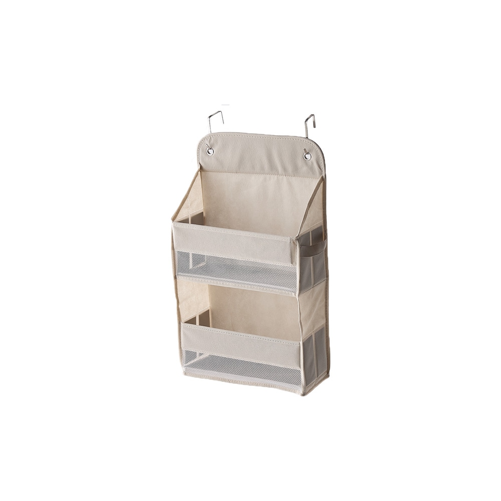 ドア掛け収納とのことですが、突っ張り壁面収納のラックに、借り置き用としての収納に利用しています。なので付属のフックは使用していません。