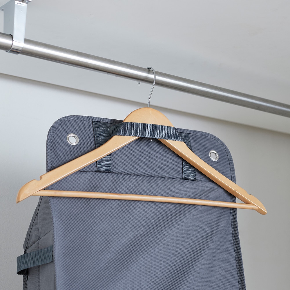 背面ベルトにハンガーを通して、クローゼット内でも利用できるということで、今後もしも使い道を変更する際にも役立ちそうです。