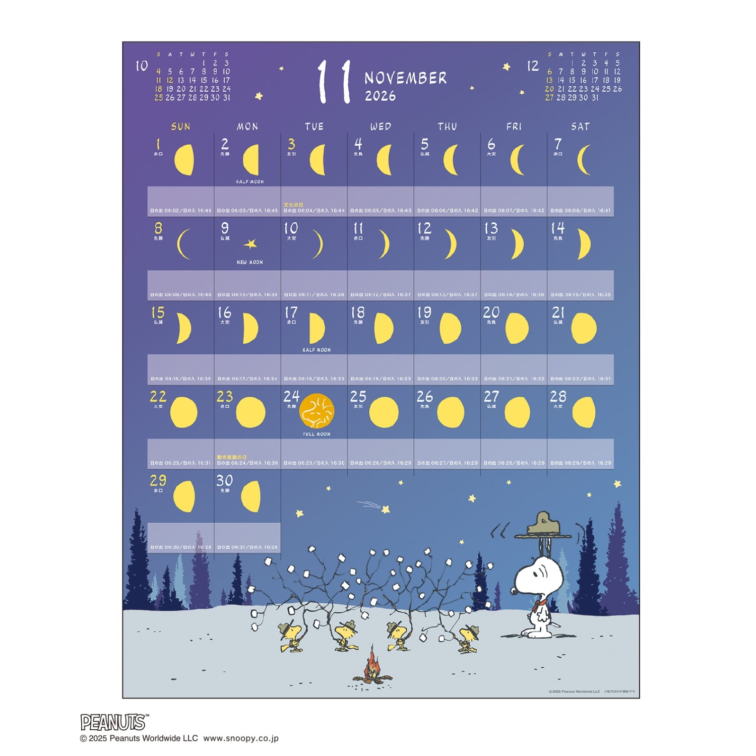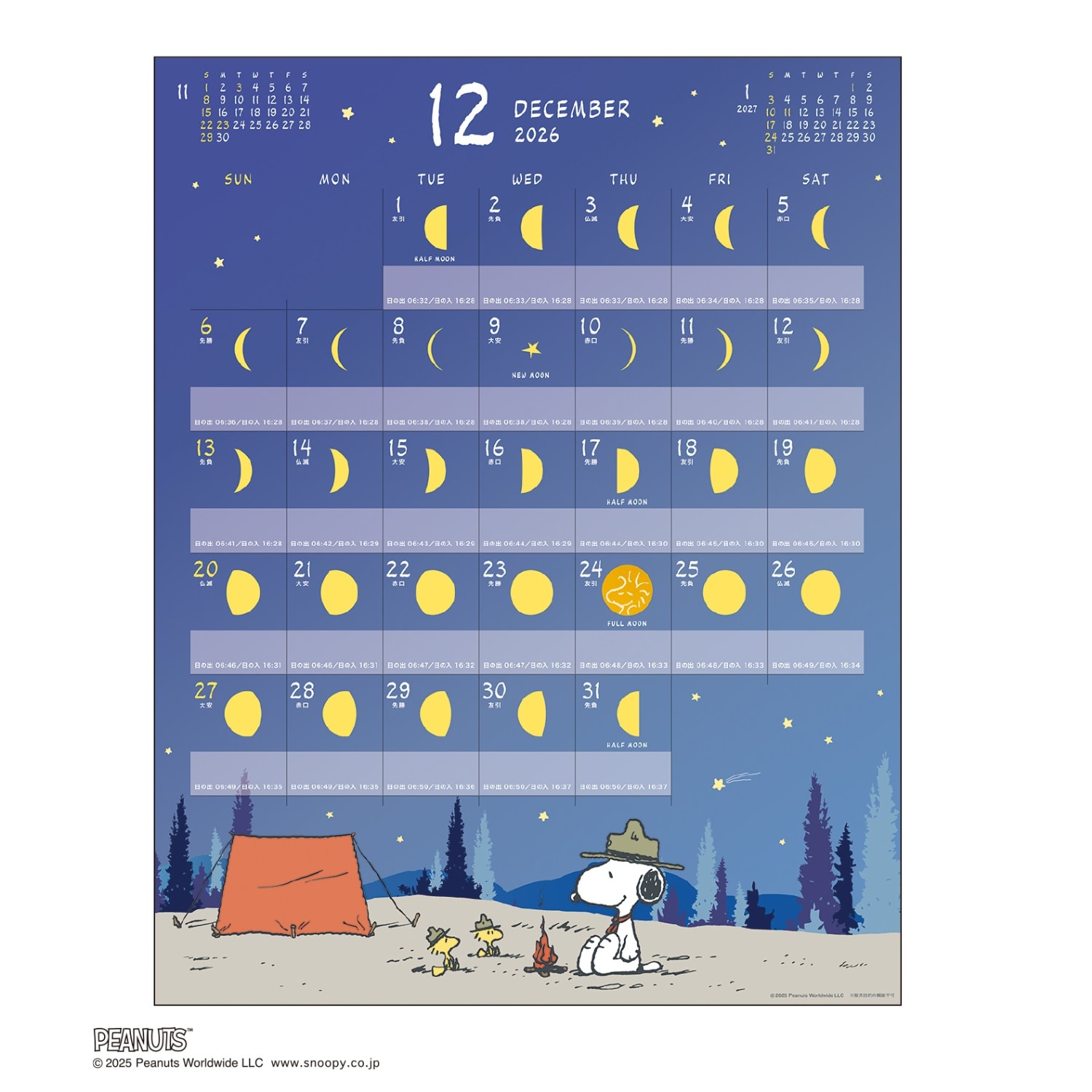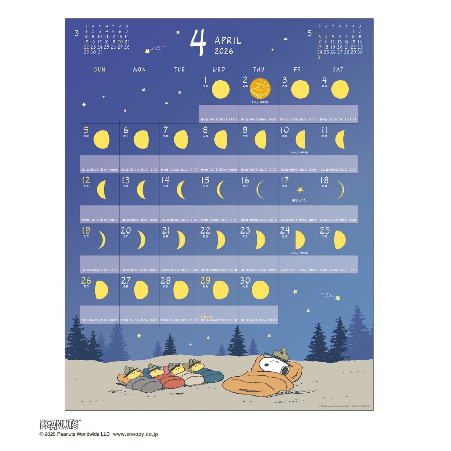 2026年太陽暦が分かる壁掛けカレンダー「スヌーピー」