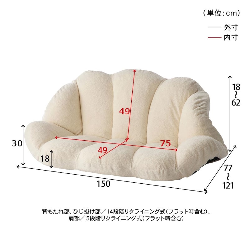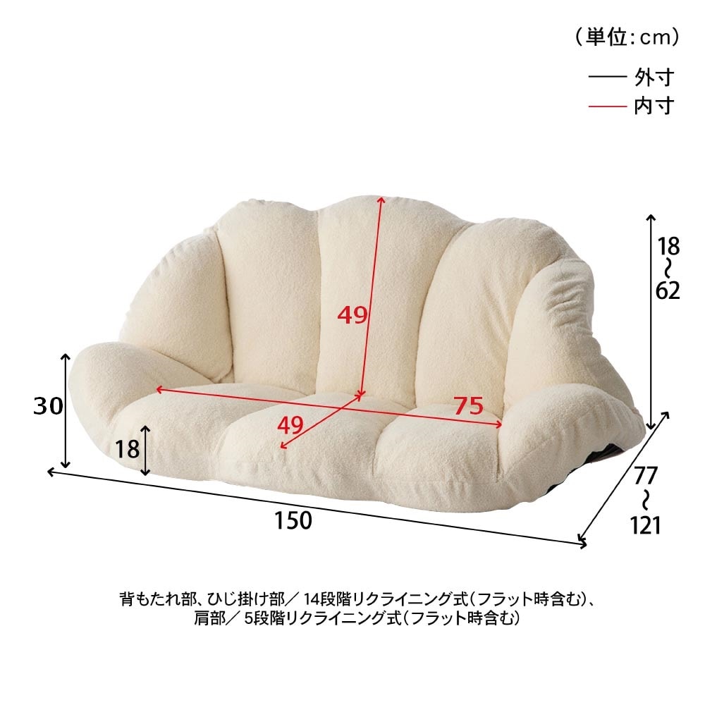 ●幅150、奥行77~121、高さ18~62(座面高18)cm