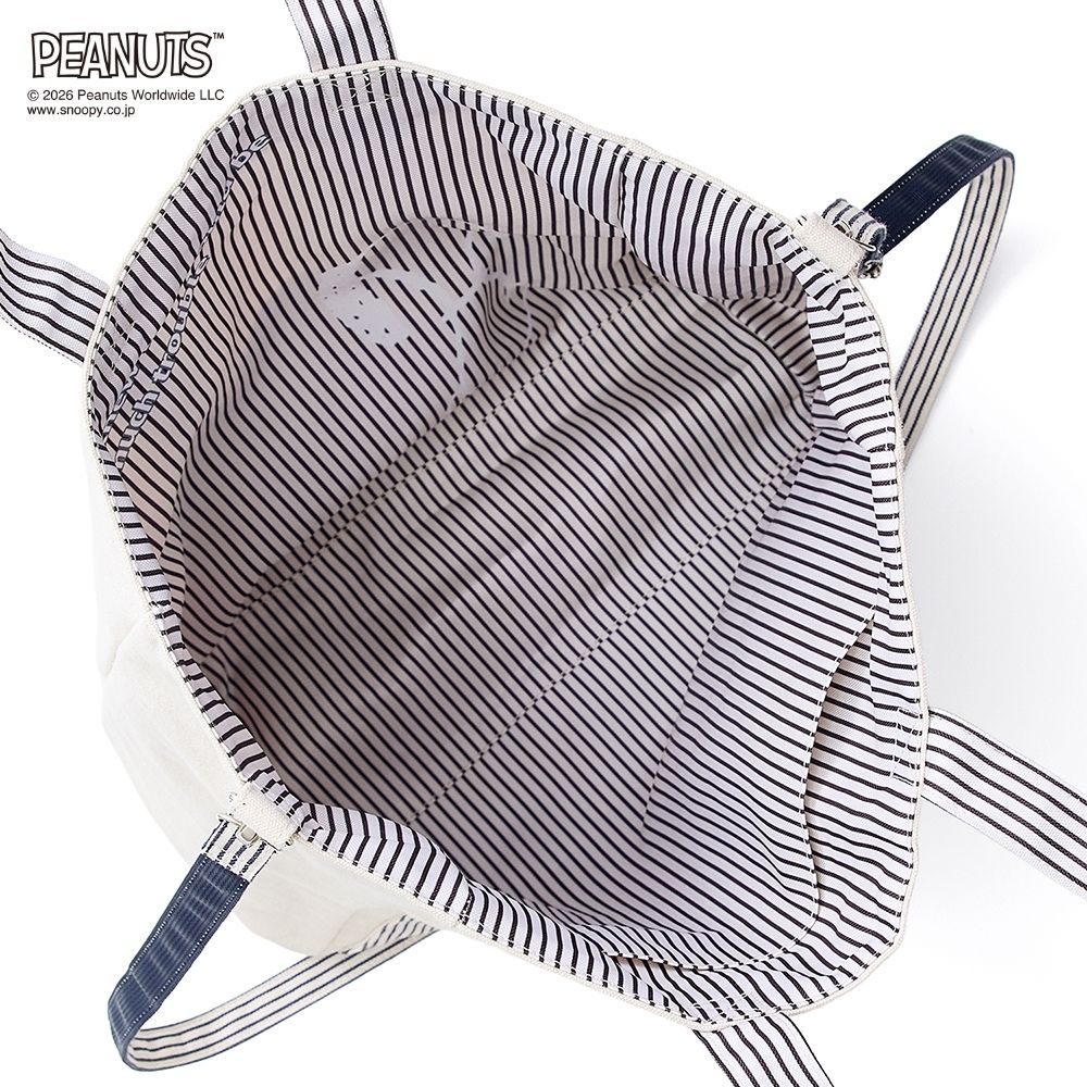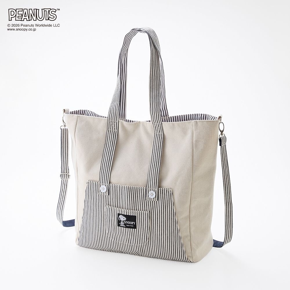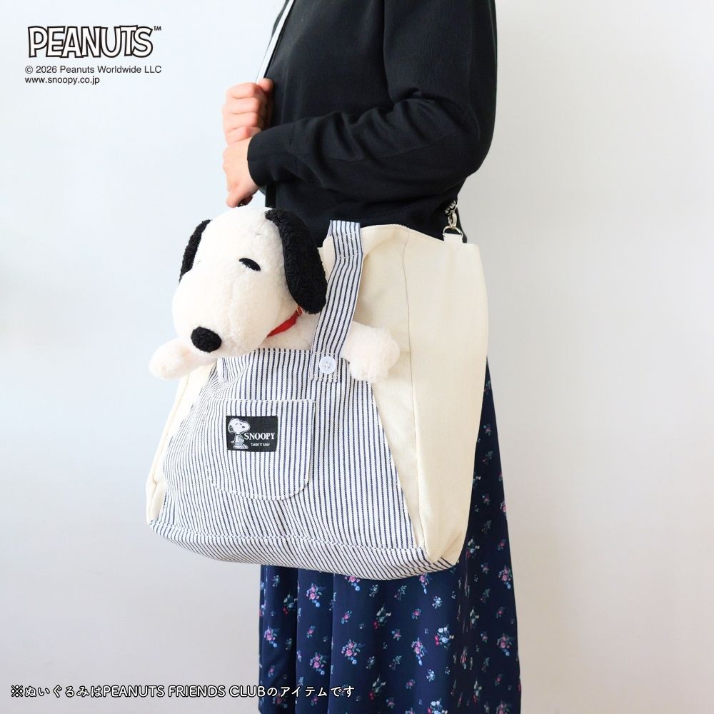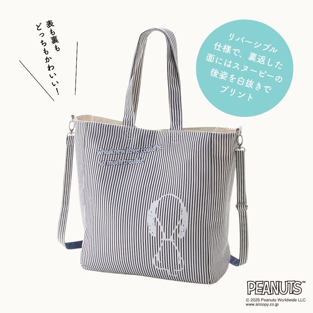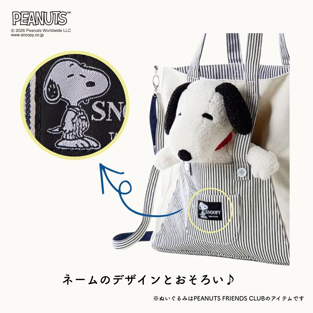 スヌーピーミュージアムでスヌーピーぬいを購入し、ぬいも可愛く入る大人ぽい推し活バックを探し始めた日にこのバックを見つけてしかも発売日でした!!大人ぽく色味もリバーシブルで使いやすく白布とストライプなので洋服なんでも合います!マグネットで止められるのが結構大きいです🩵ぬい入れても痛々しくならず自然で可愛いです。