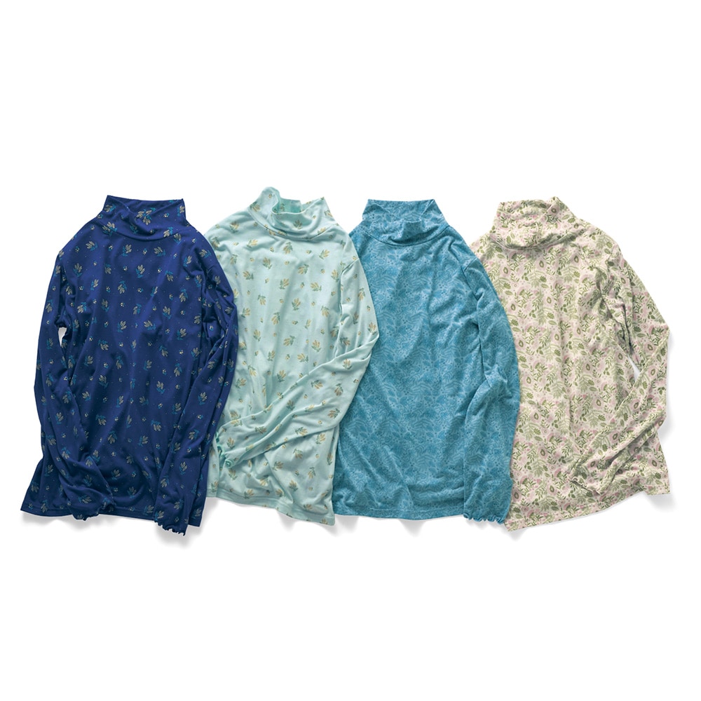 柄と色合いが素敵。肌触りは良いです。タートルネックを期待していたのにハイネックでした。写真を見てタートルには見えないと思っていたら、やはりでした。残念です。大好きなミニラボなので、タートルがいらない時期になったら着ようと思います。生地が薄くて透け透けなのが本当に残念。