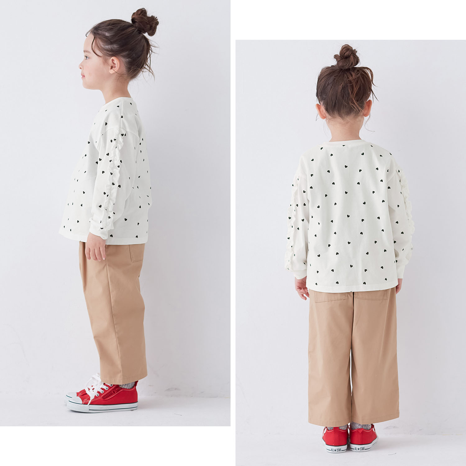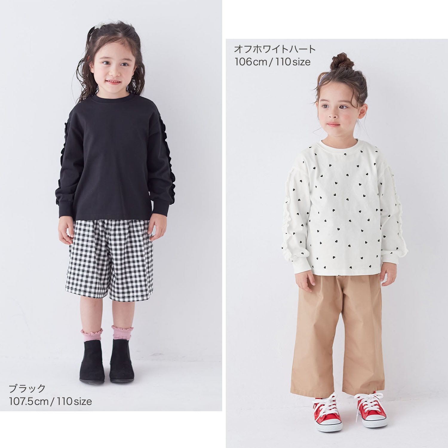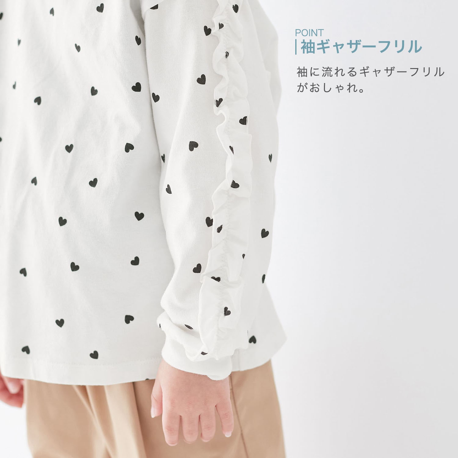• オフホワイトハート/モデル身長106cm・110サイズ着用