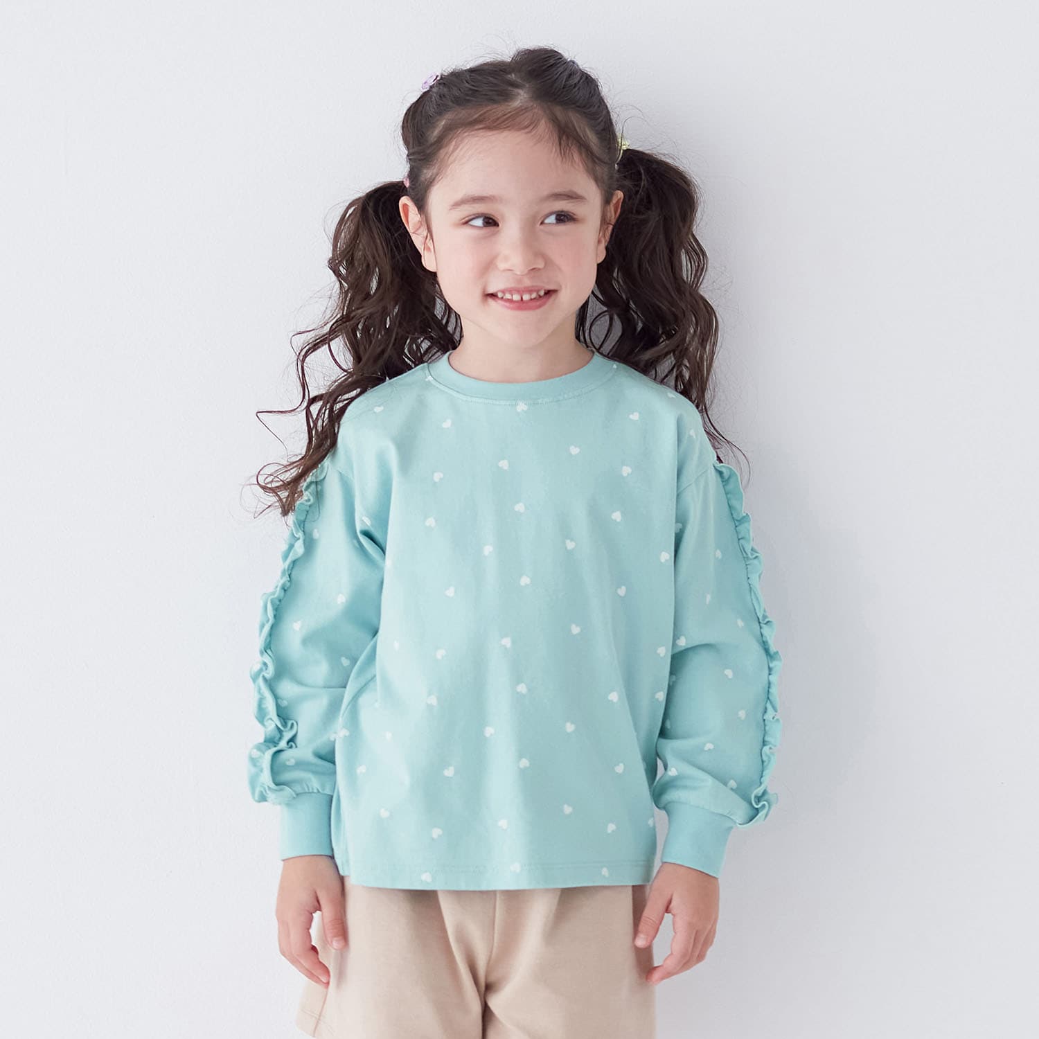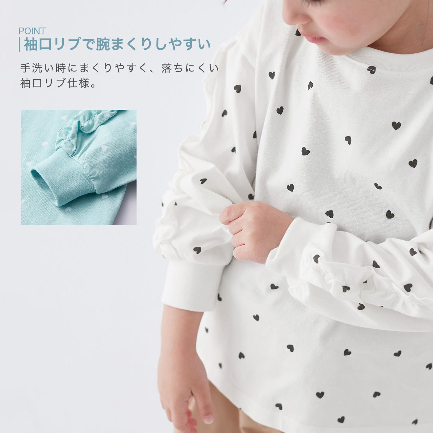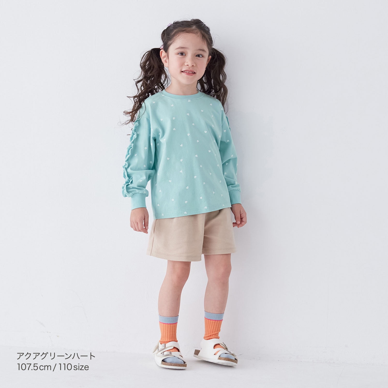 • オフホワイトハート/モデル身長106cm・110サイズ着用