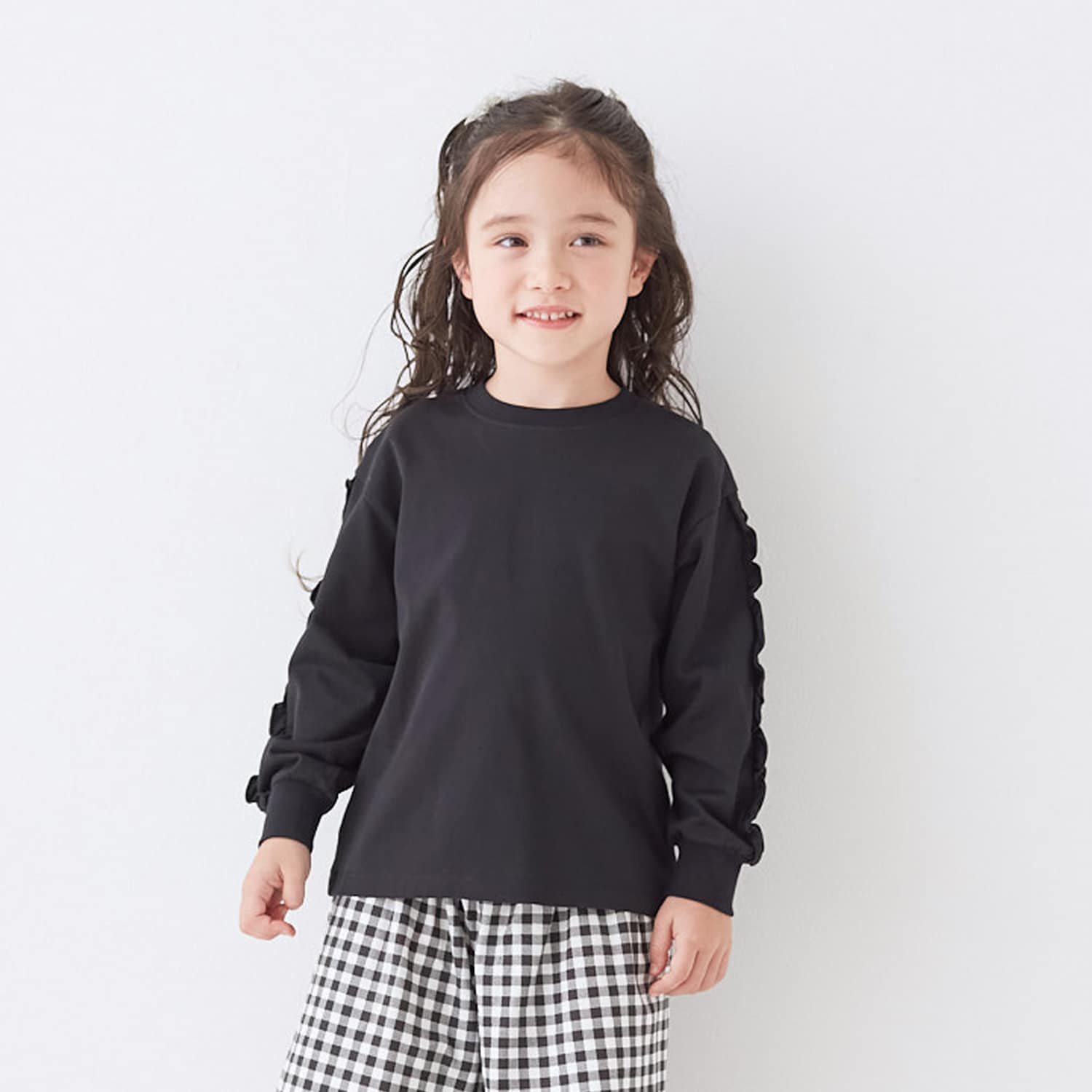 袖ギャザーフリルゆる長袖Tシャツ 【子供服】