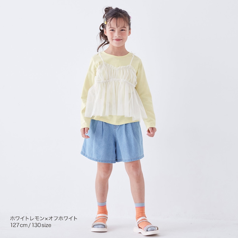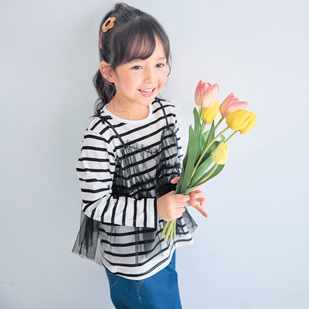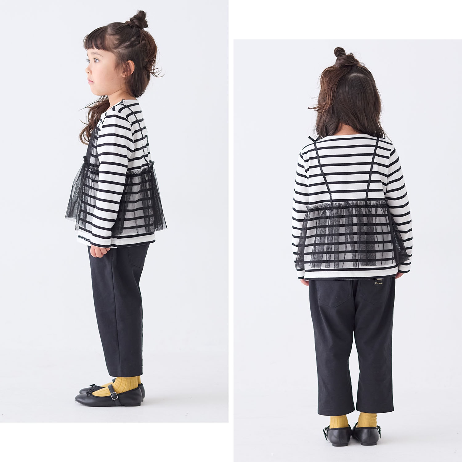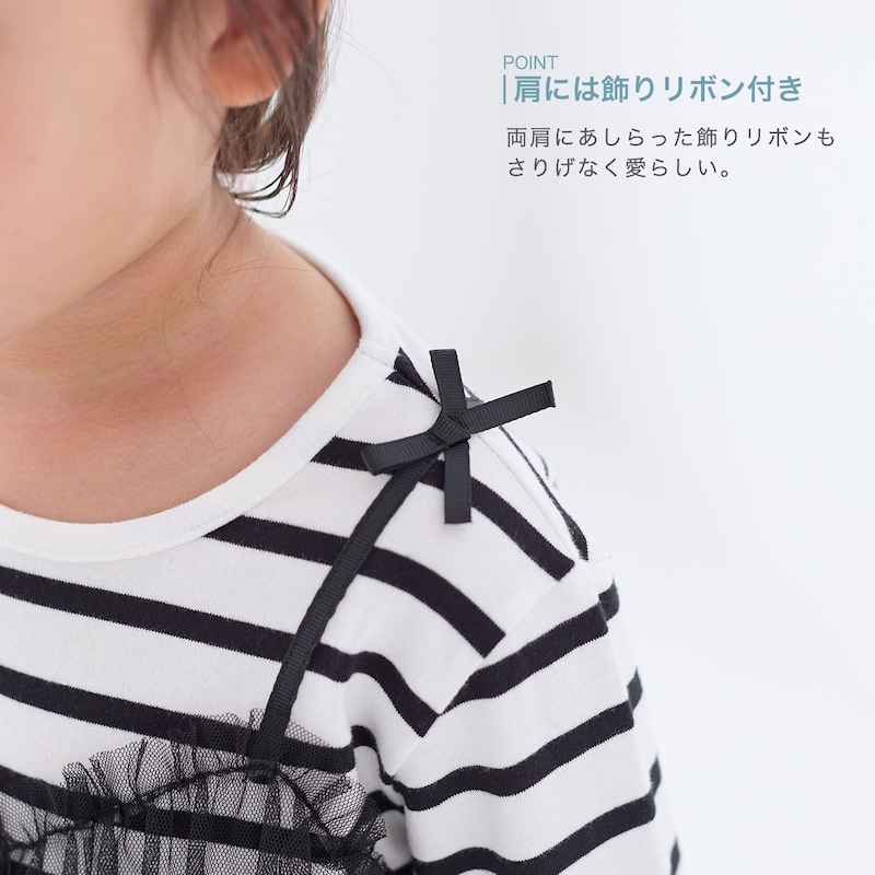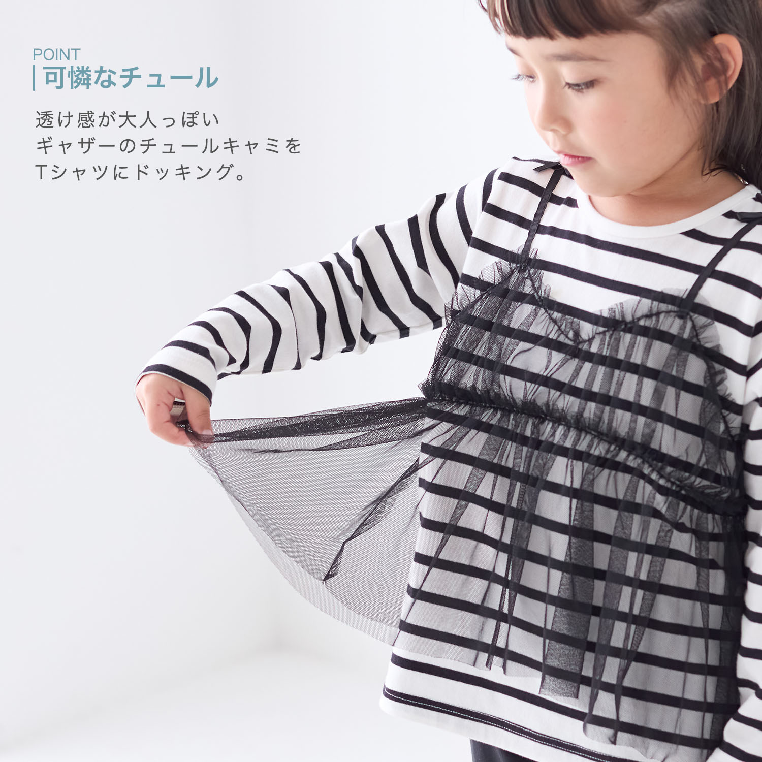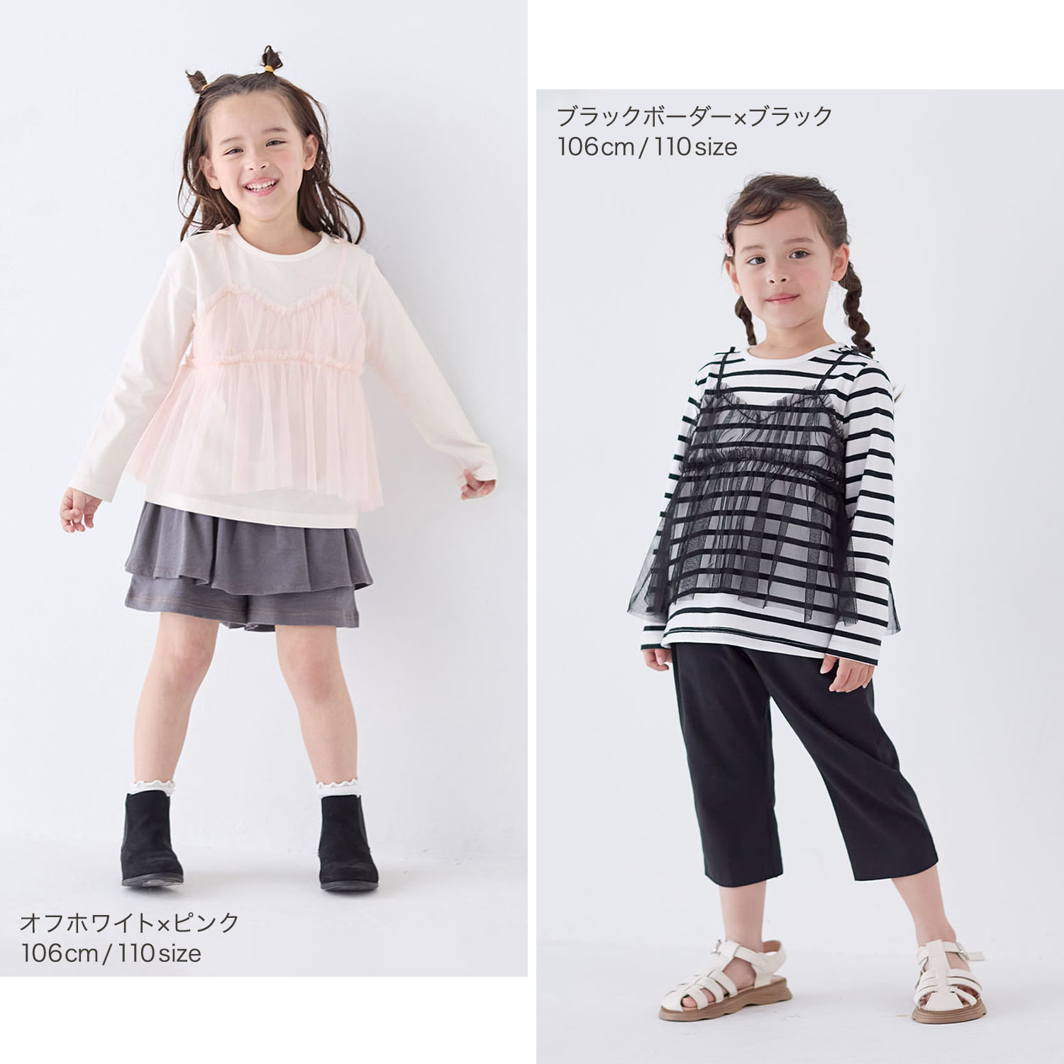 肩リボンチュールキャミレイヤード風長袖T シャツ 【子供服】