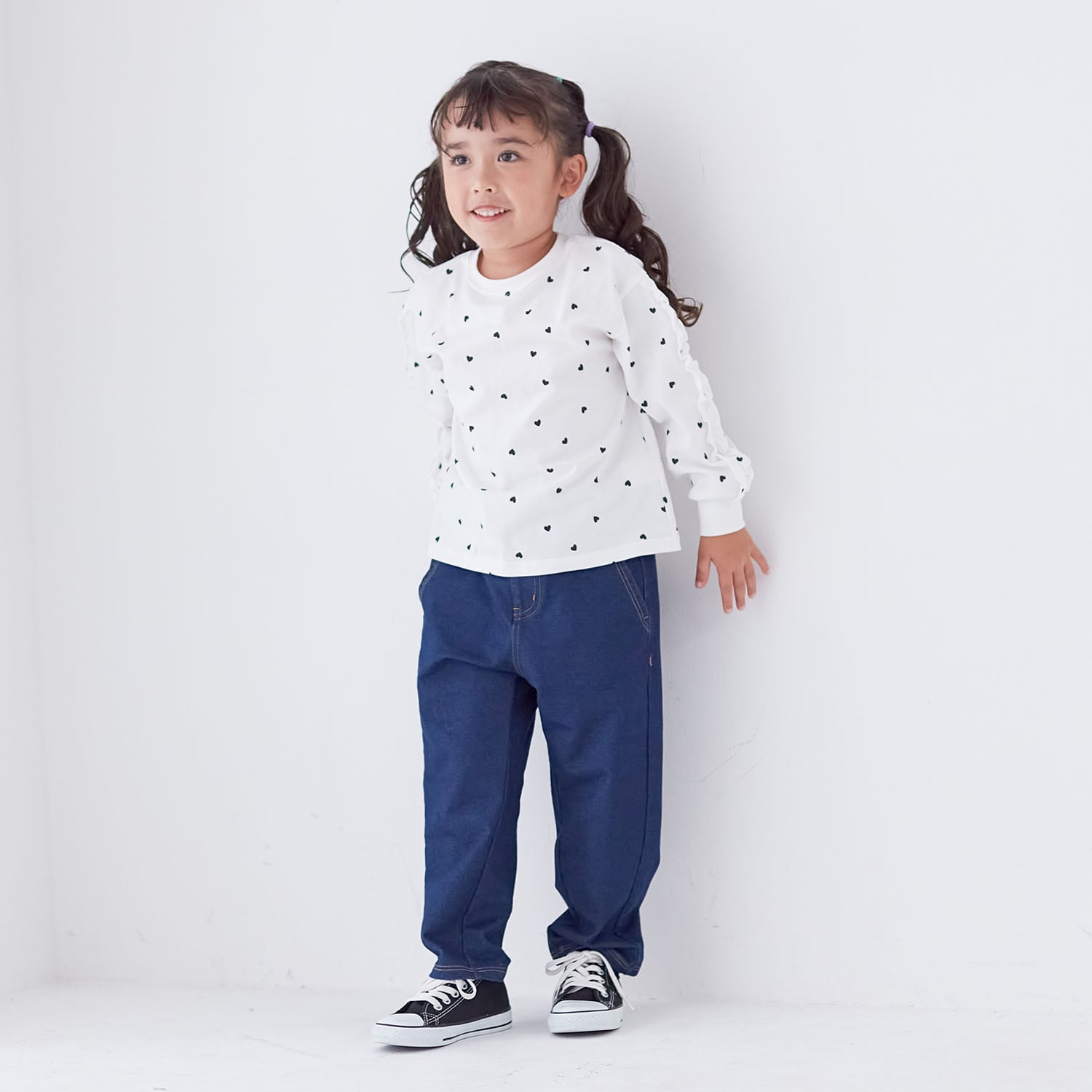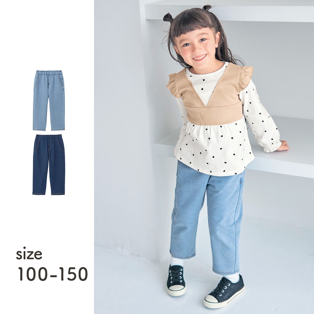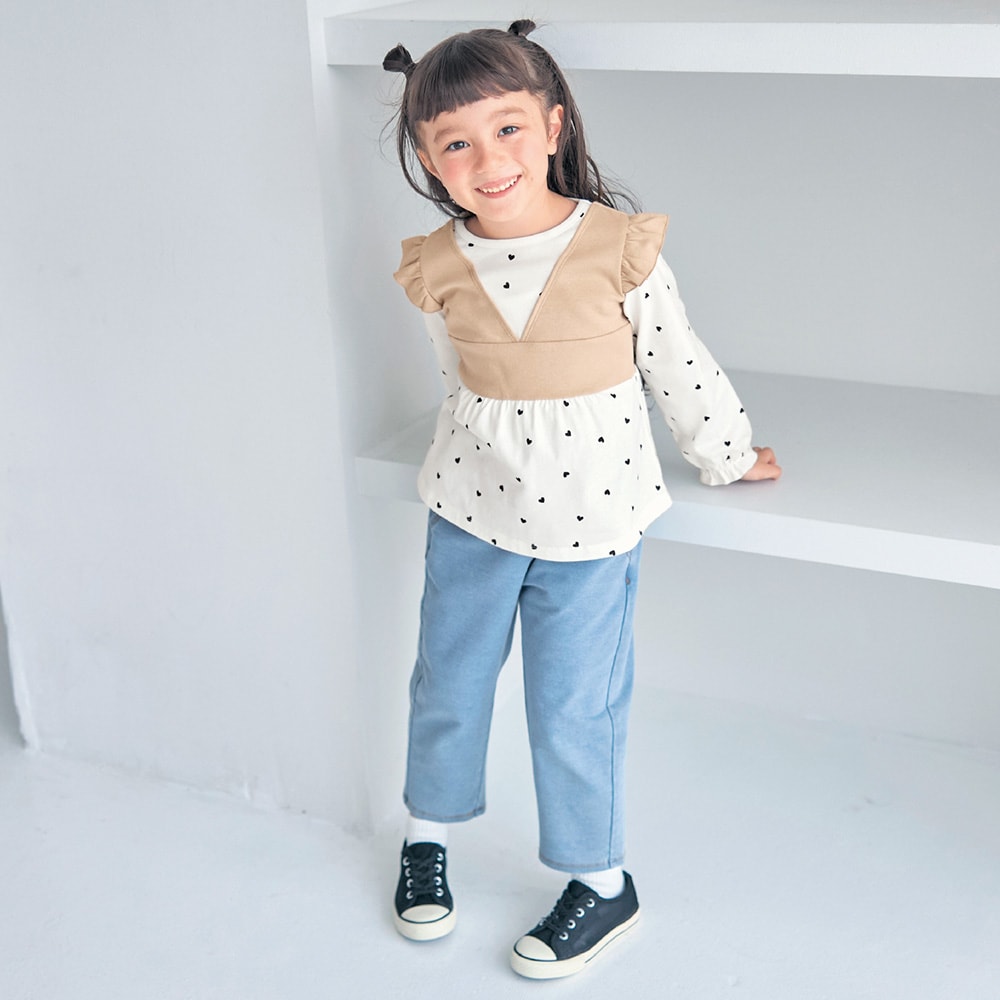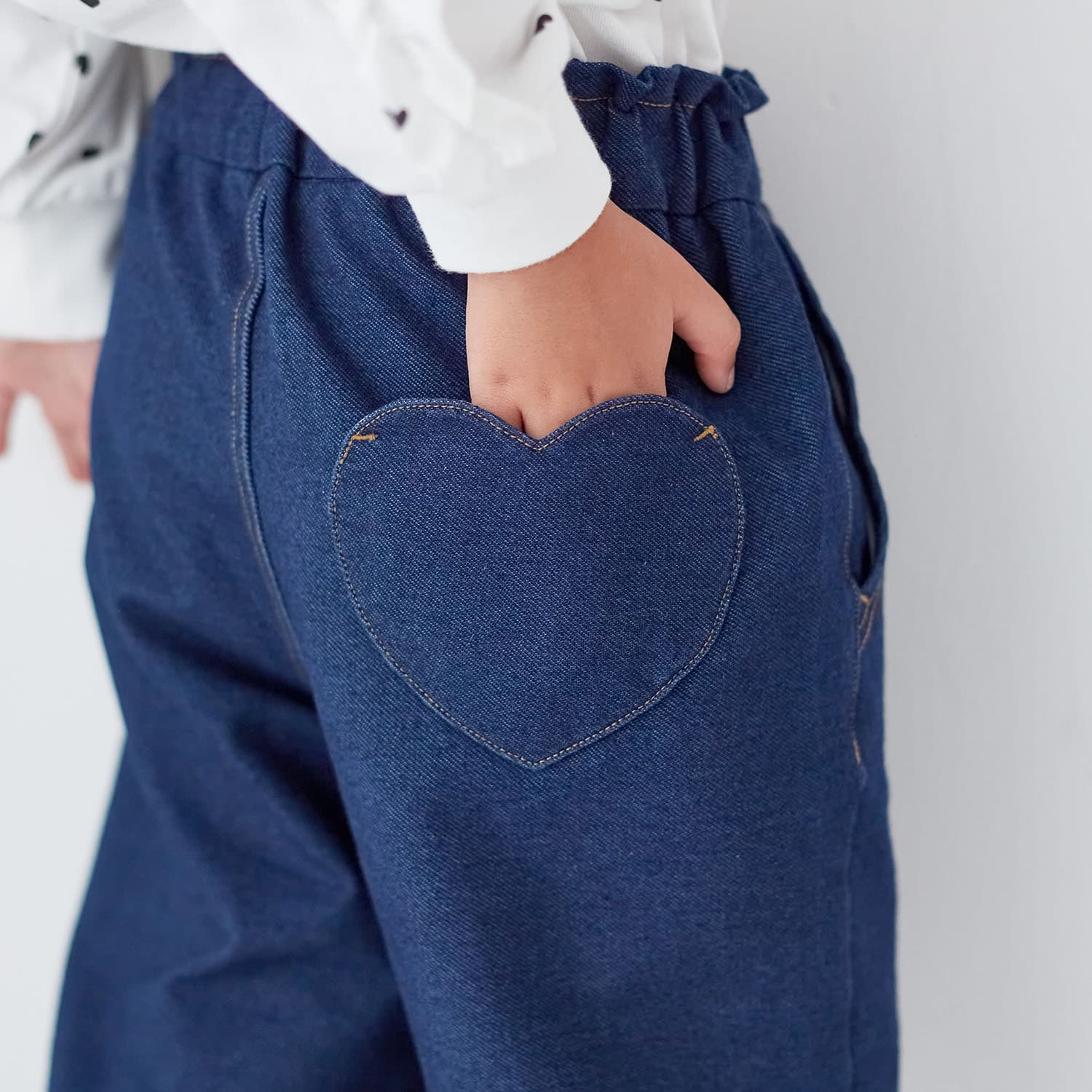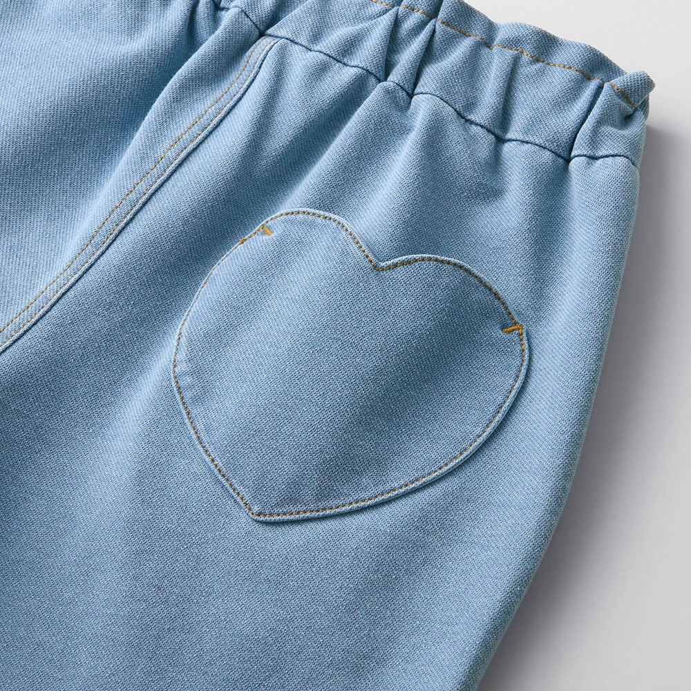 私服登校の学校なので、学校用の服として購入。デニムが好きで、後ろがこっそりハート形ポケットなのが、ドキドキワクワクして嬉しいそうです(ハート形ポケットには、お友達からもらった「宝物」をこっそり入れていました)。