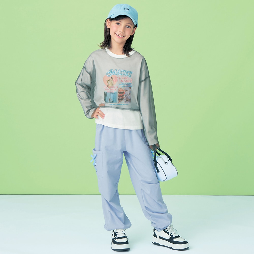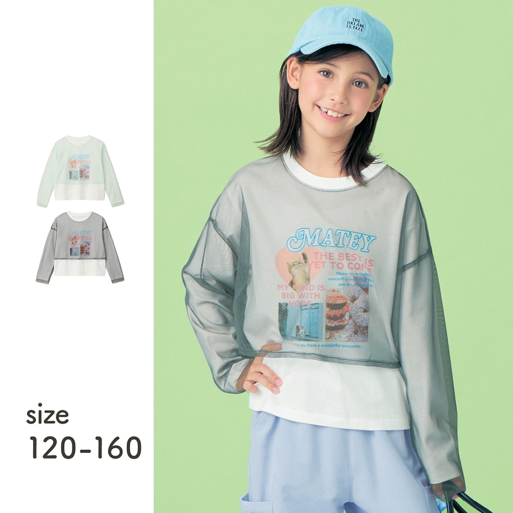 チュールショートTレイヤード風プリントTシャツ 【子供服 長袖】