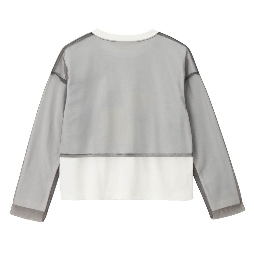 ●<カットソー>綿100%(天竺)、チュール部分:ポリエステル100%(チュール)、リブ部分:<カットソー>綿95%、ポリウレタン5%(リブ)