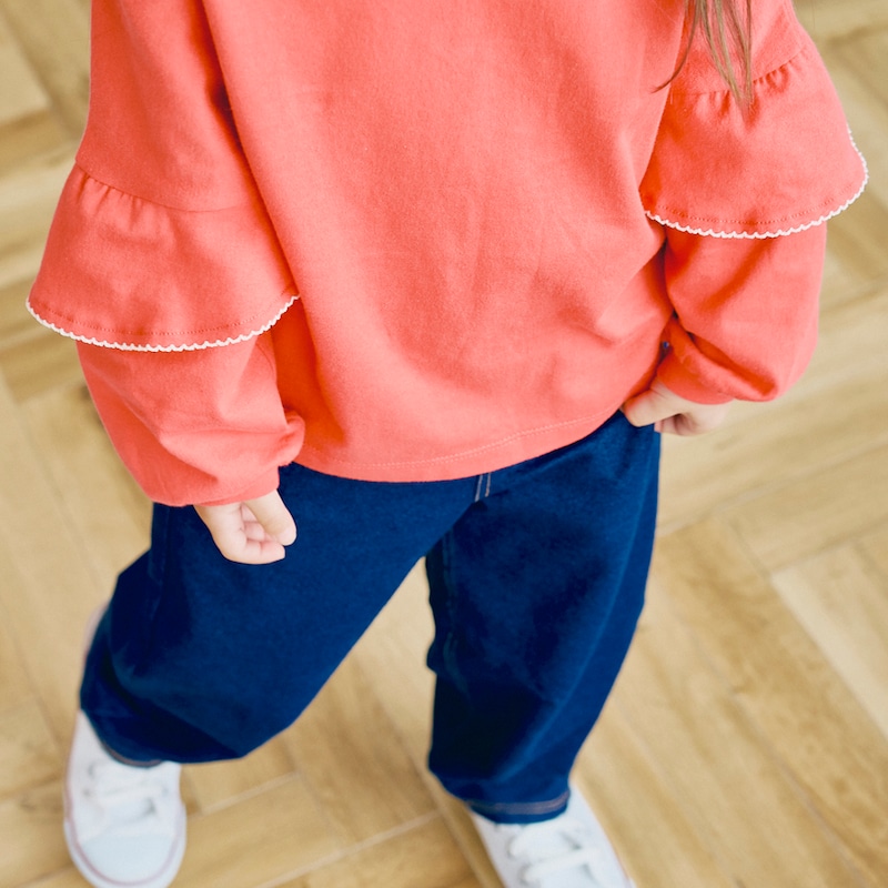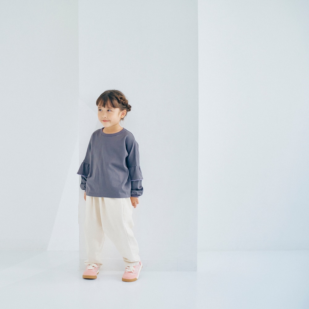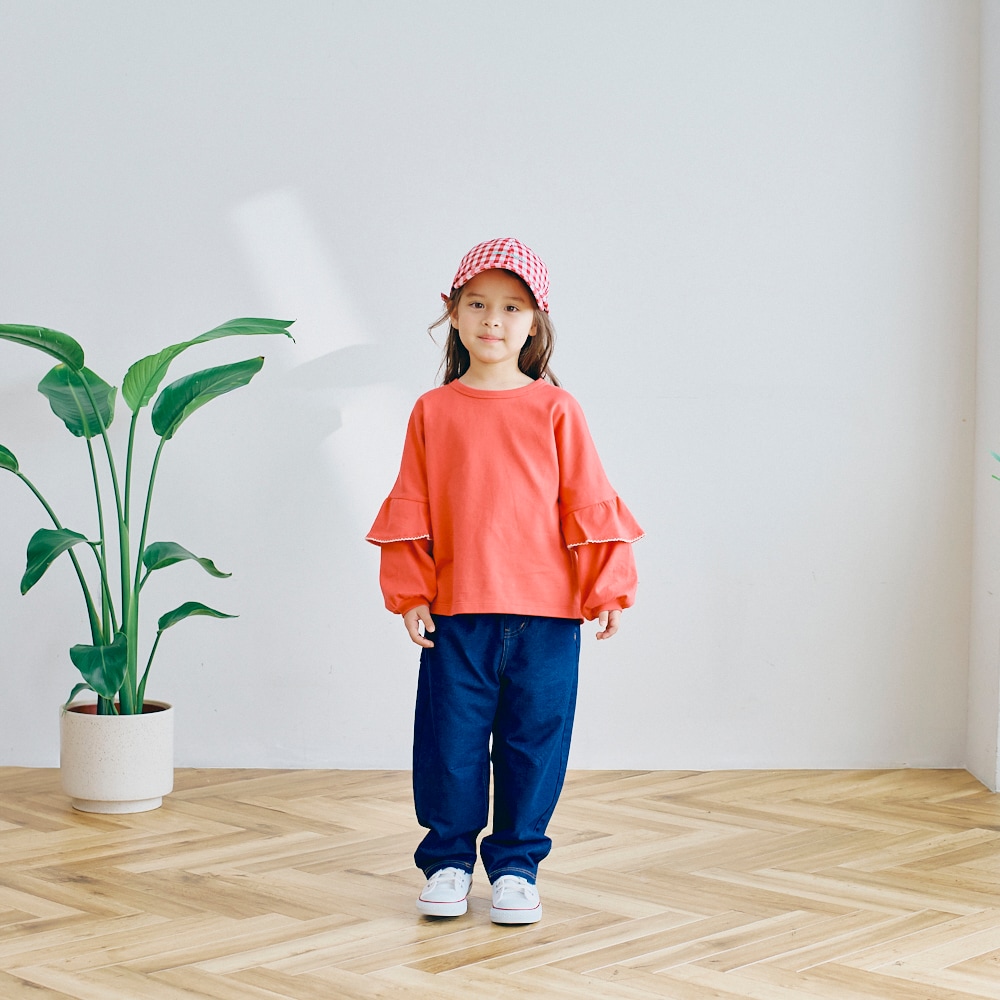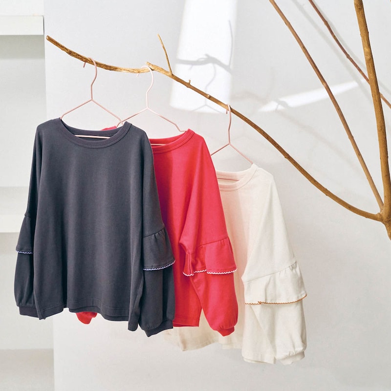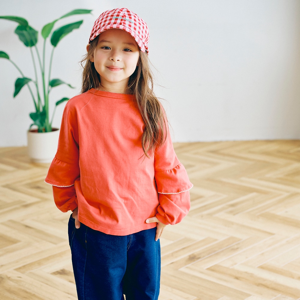 マイニチお洗濯してもよれにくい袖フリル長袖Tシャツ 【子供服】