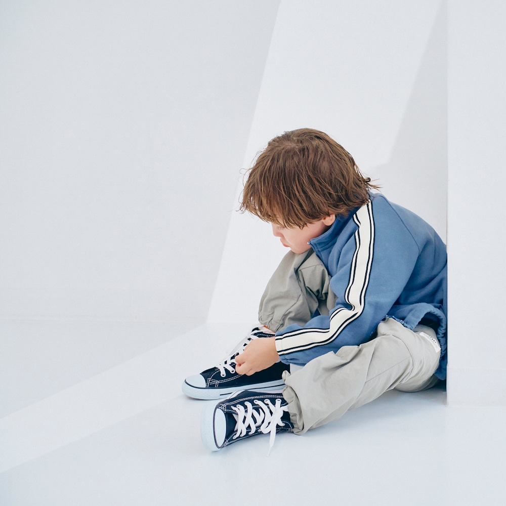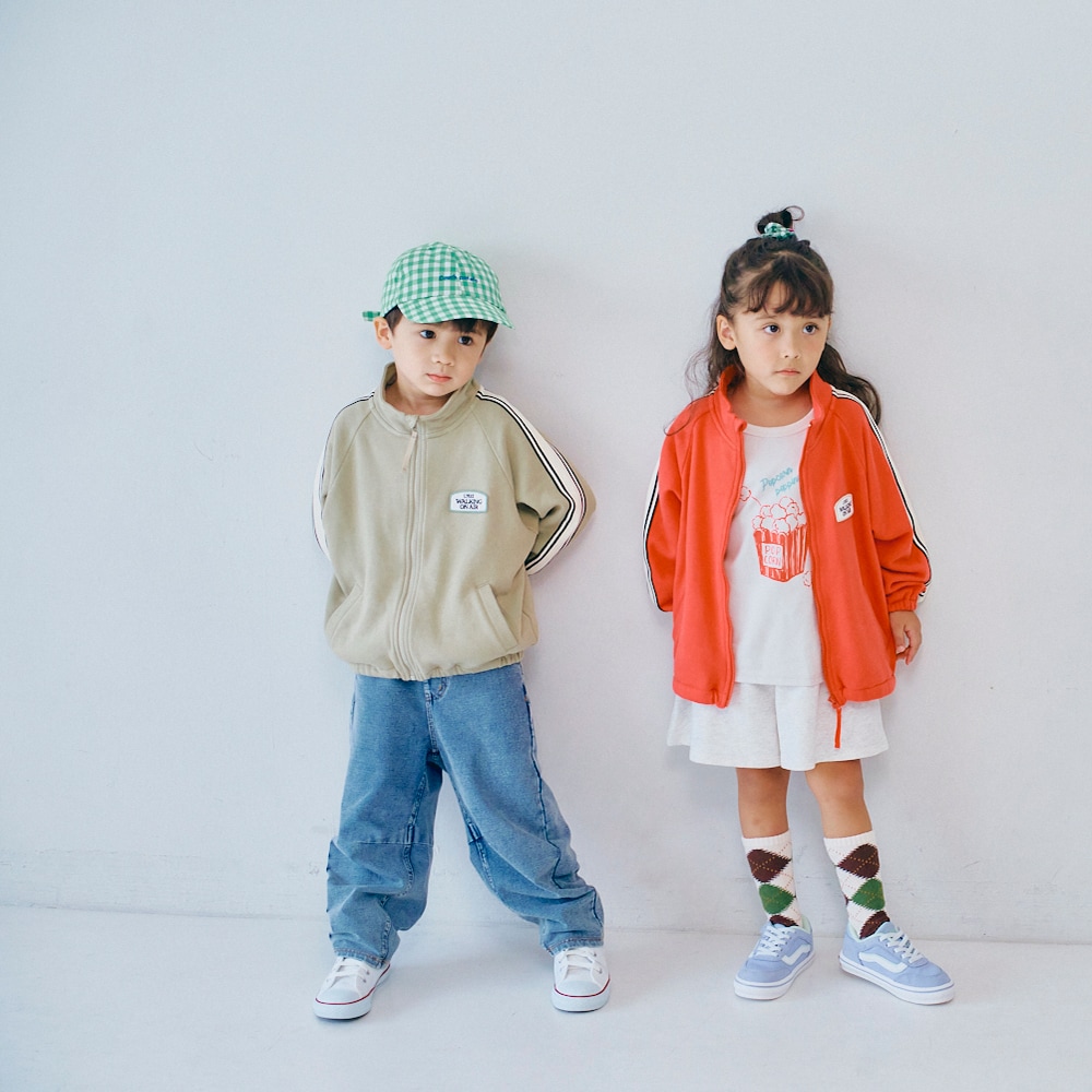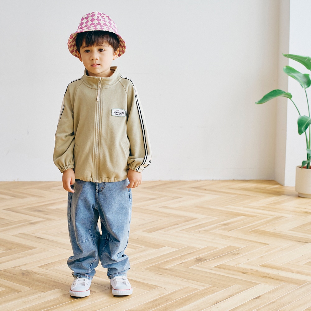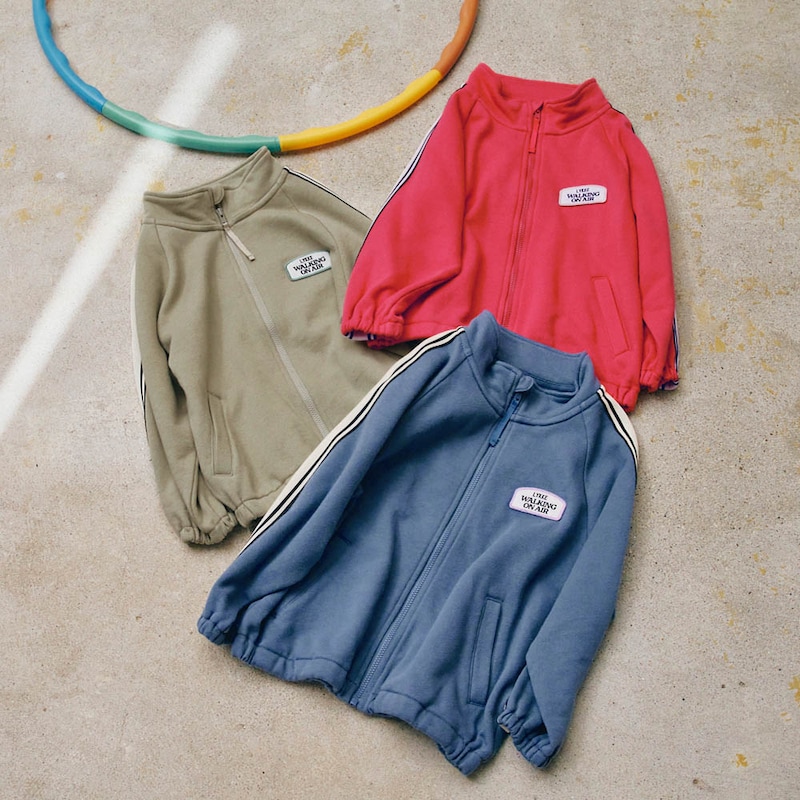 やわらか裏毛ラインテープデザインスタンドネックジャケット 【子供服】