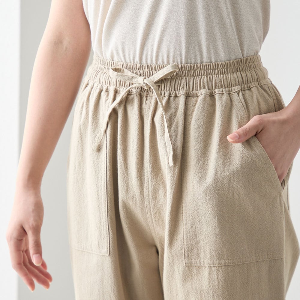 涼しいはき心地のインド綿ベイカーリラクシングパンツ