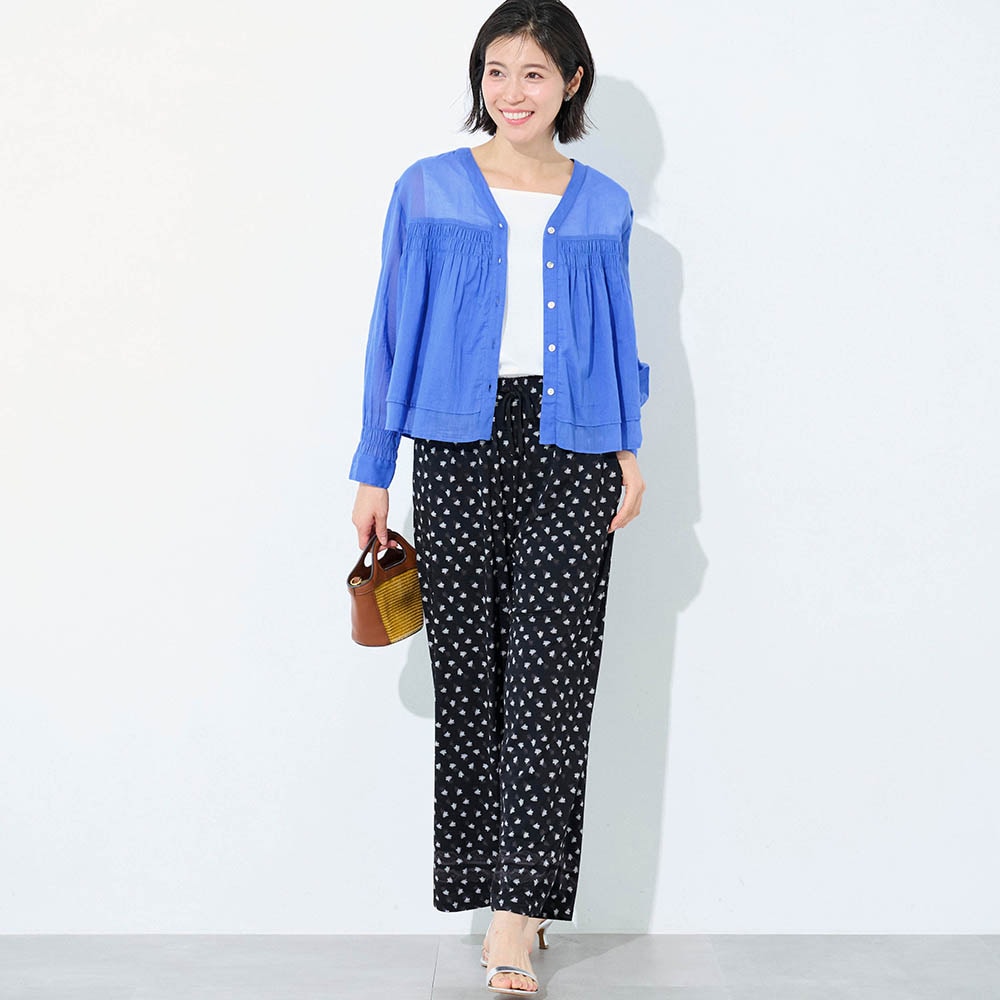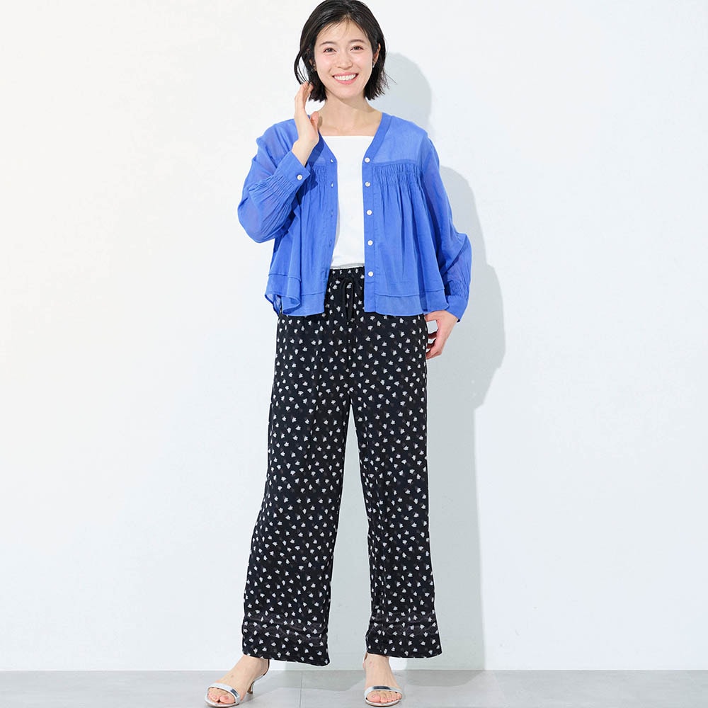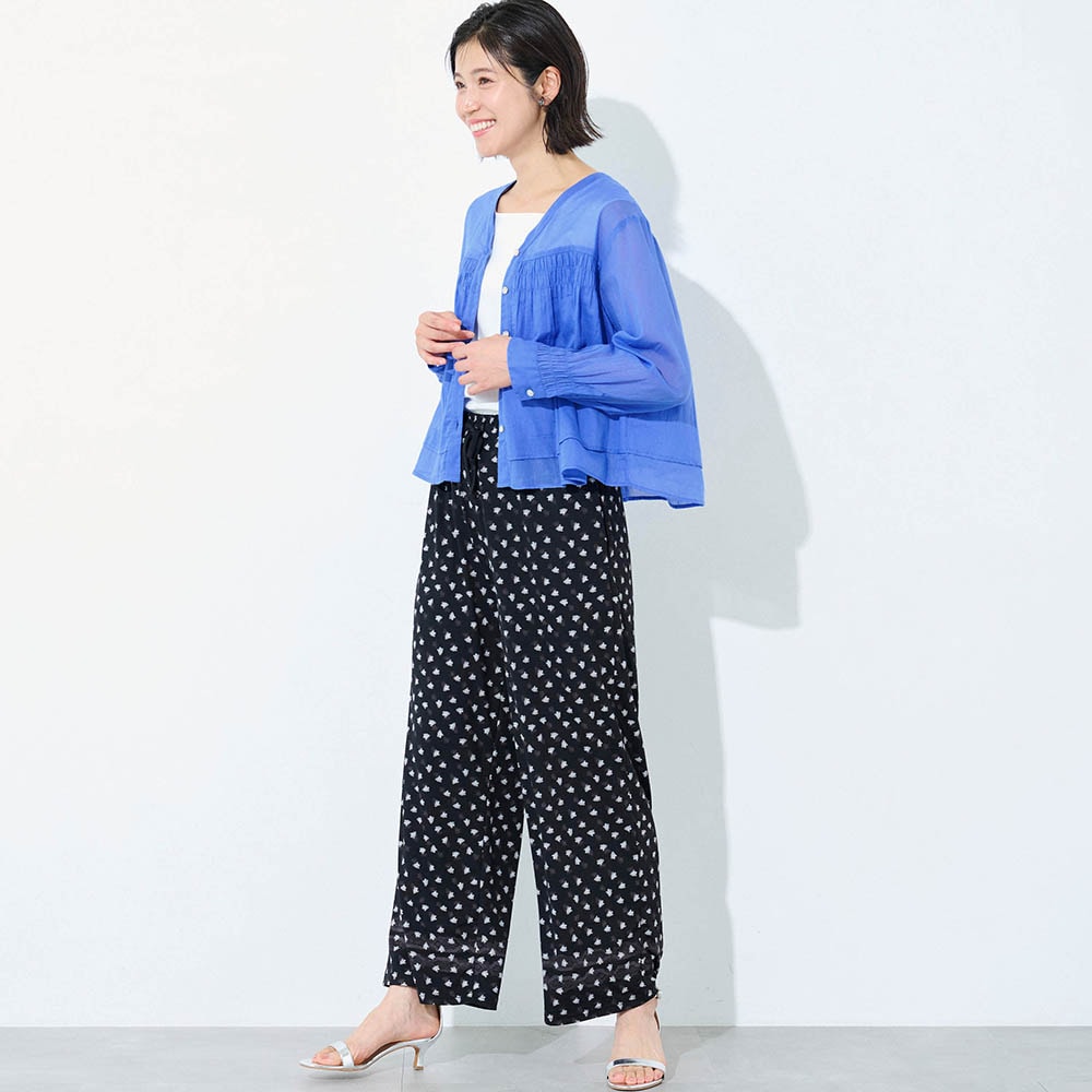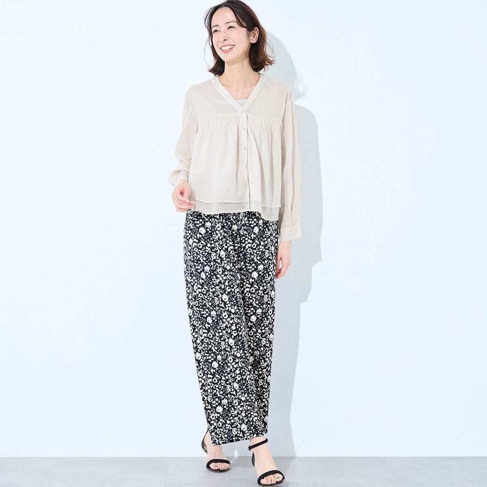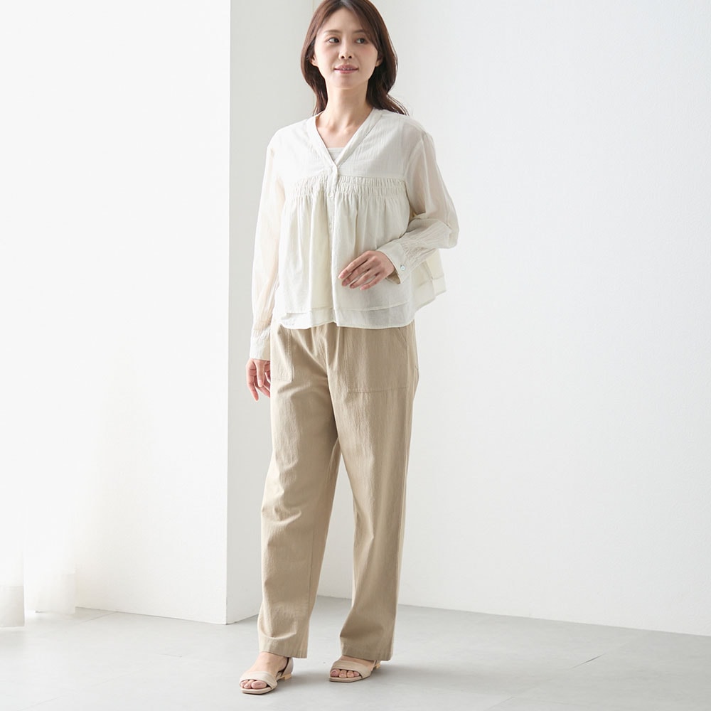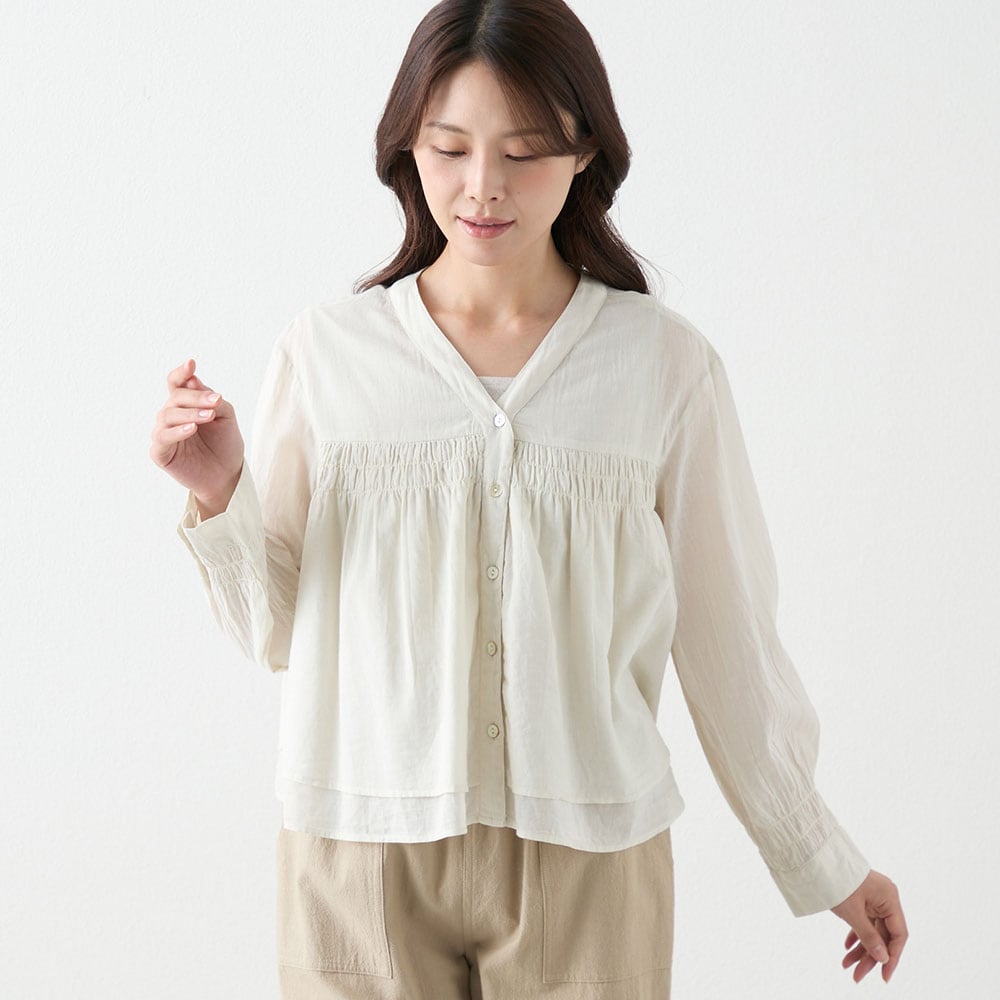 夏に着る薄手の長袖が欲しくて探していました。シャーリングから下は少し広がっていて短めの丈が気に入りました。ただかなり薄手なので中にしっかり着ないと透けてしまいます。洗濯をしたらどうなるか少し心配です。