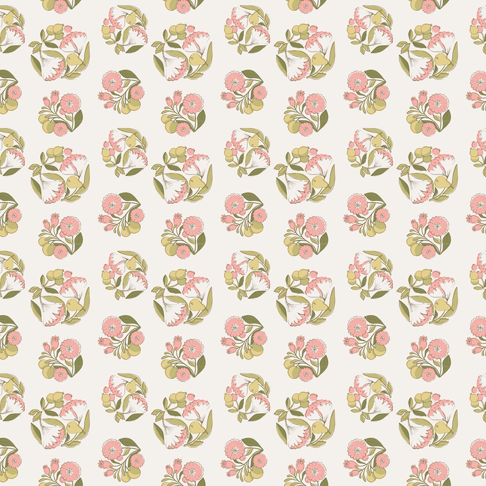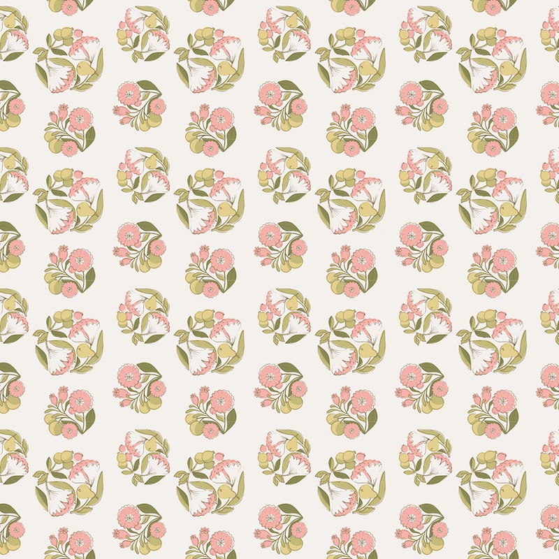 ・スタンプで押したようなレトロな雰囲気のブーケ柄が魅力