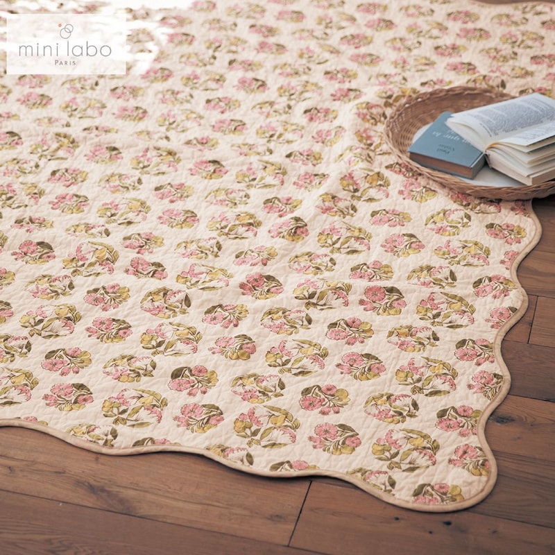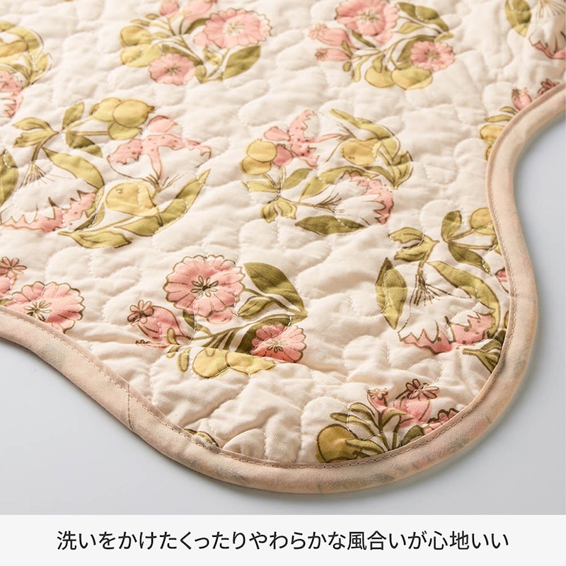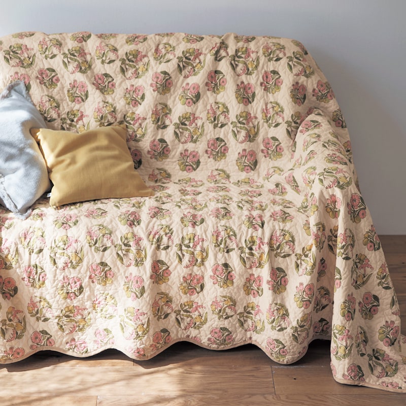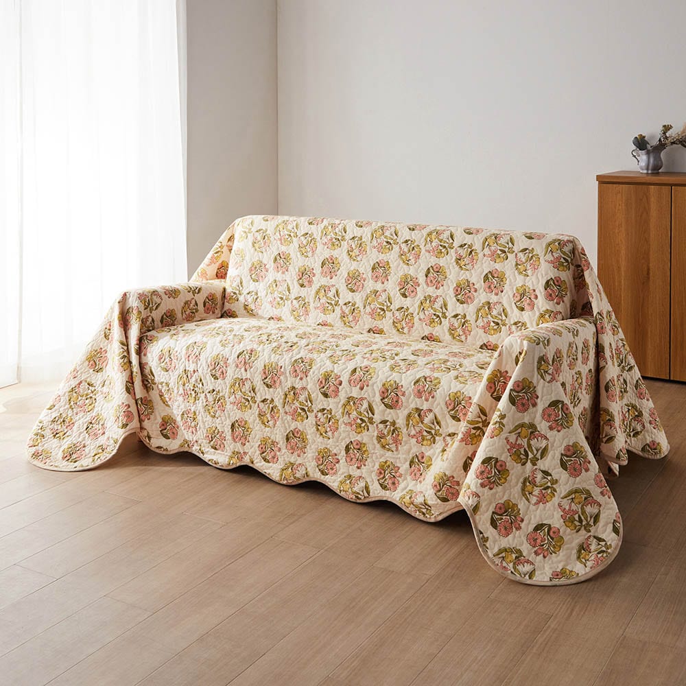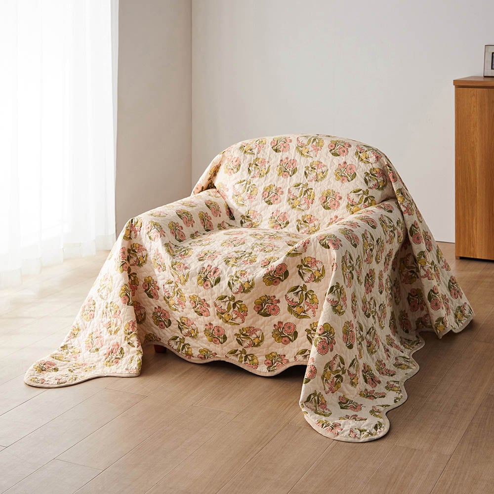 綿素材を使ったウォッシュキルトのマルチカバー・ソファカバー/春のブーケ 「ミニラボ」