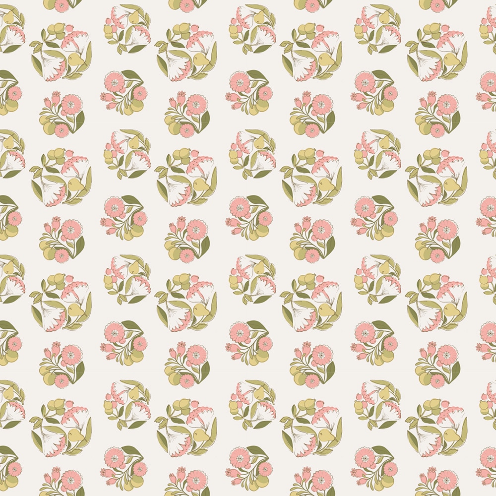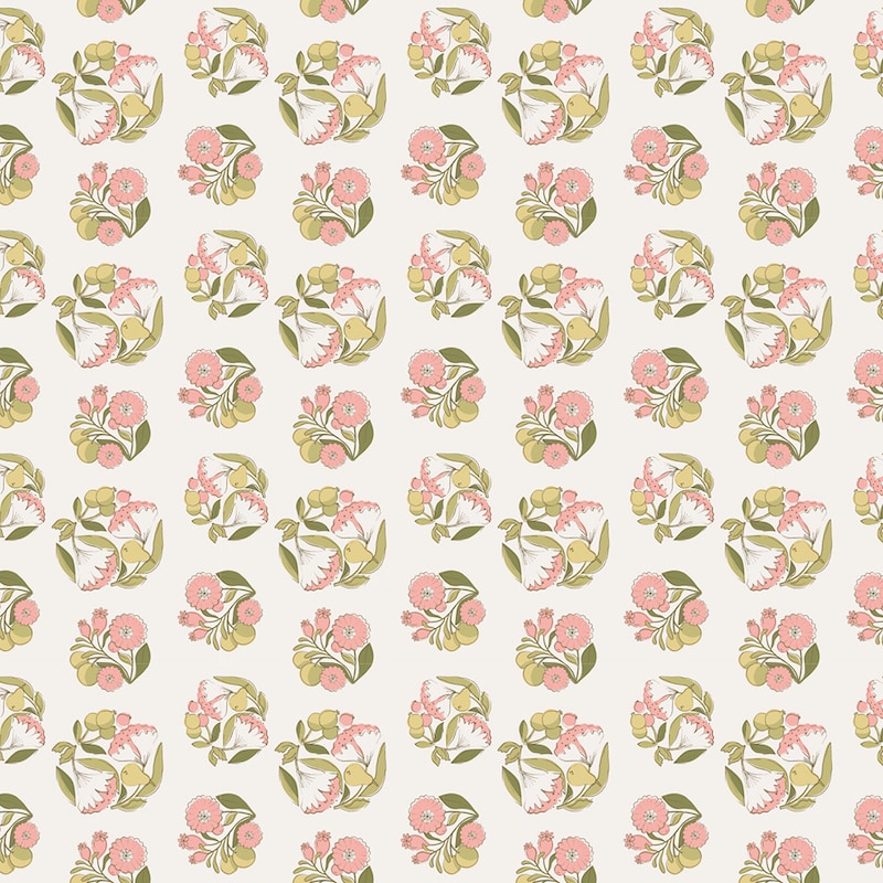 ・スタンプで押したようなレトロな雰囲気のブーケ柄が魅力