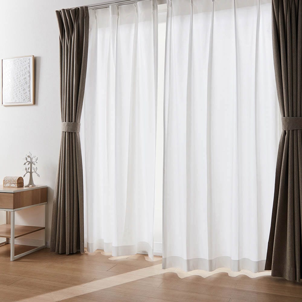 厚手カーテンは重くなく、すぐドレープも効いて、遮光性も良かったです。色は茶色よりです。レースカーテンは白くて部屋が明るくなりました。