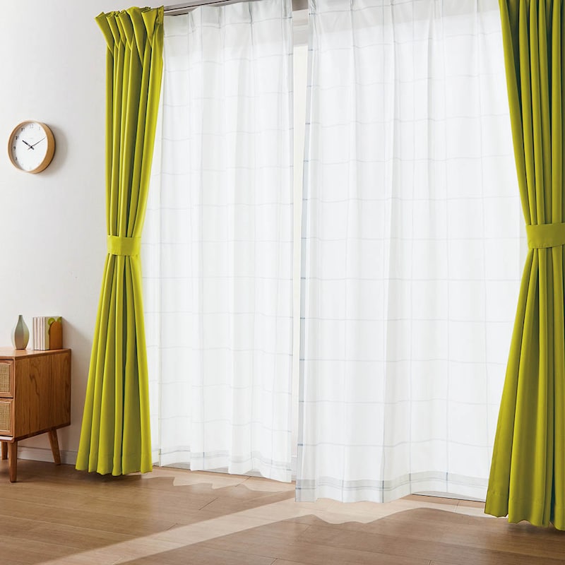 青緑の壁紙に合うカーテンを探してました。ちょっとくすんだ黄色で派手すぎす部屋が明るくなり良かったです。