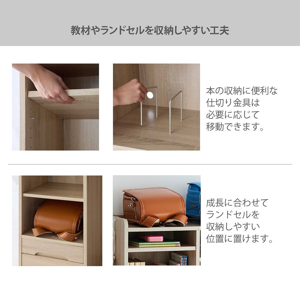 ●ランドセルや教科書、文房具、給食袋などをまとめて機能的に収納できます。