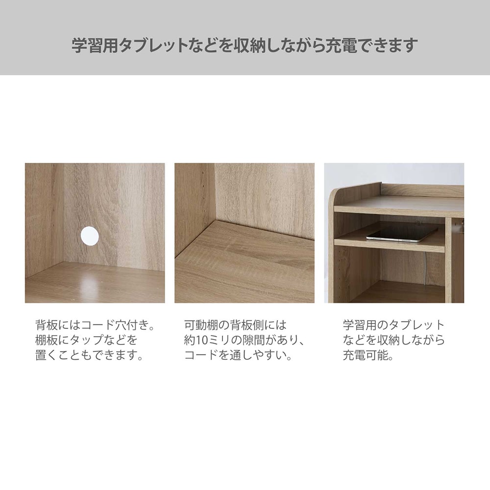 • 棚板奥は1cm隙間を空けているので配線が通り充電にも便利