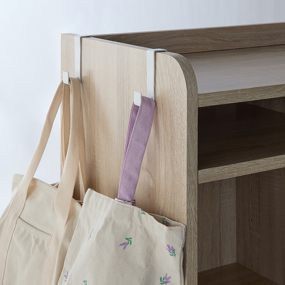 ●サイドにつけられるフックが2つ付いているので、習い事バッグや給食バッグなどをまとめて掛けられます。