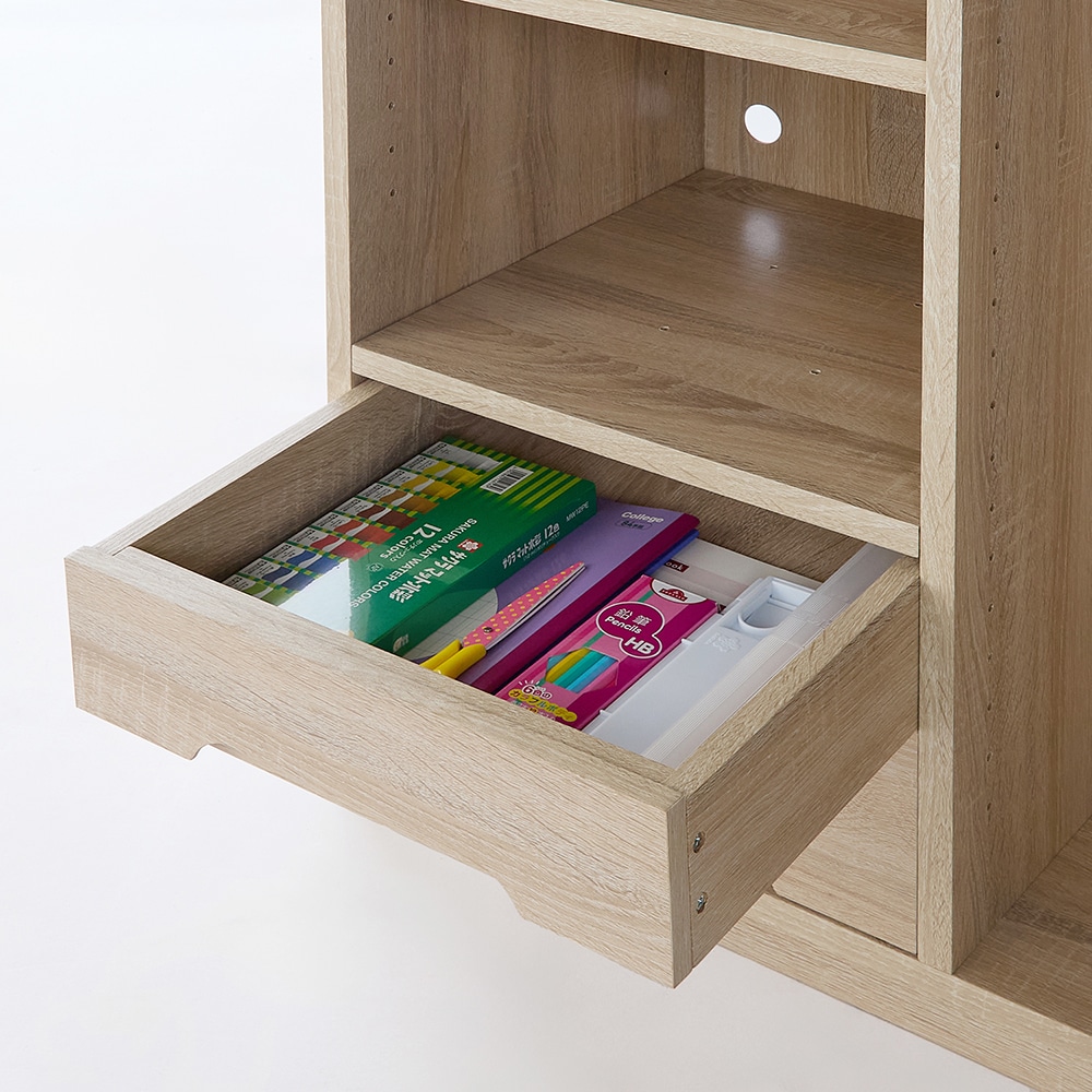 ●棚と引出しの組み合わせで、こまごました学用品も整理しやすいです。
