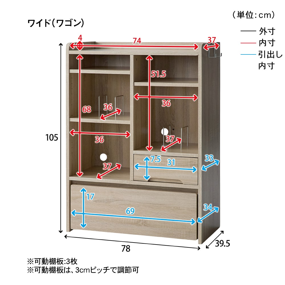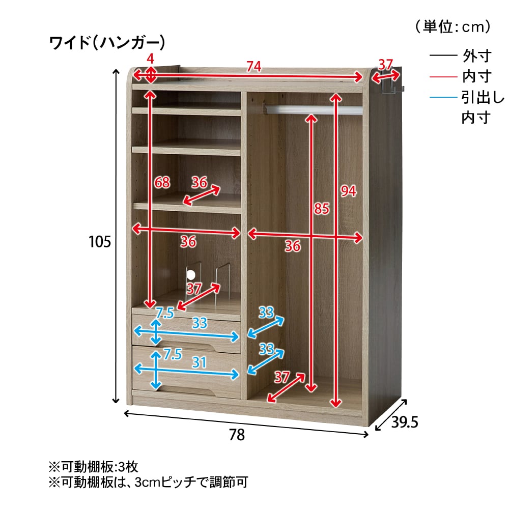 ■ワイド(ハンガー、ワゴン)/幅78、奥行39.5、高さ105cm